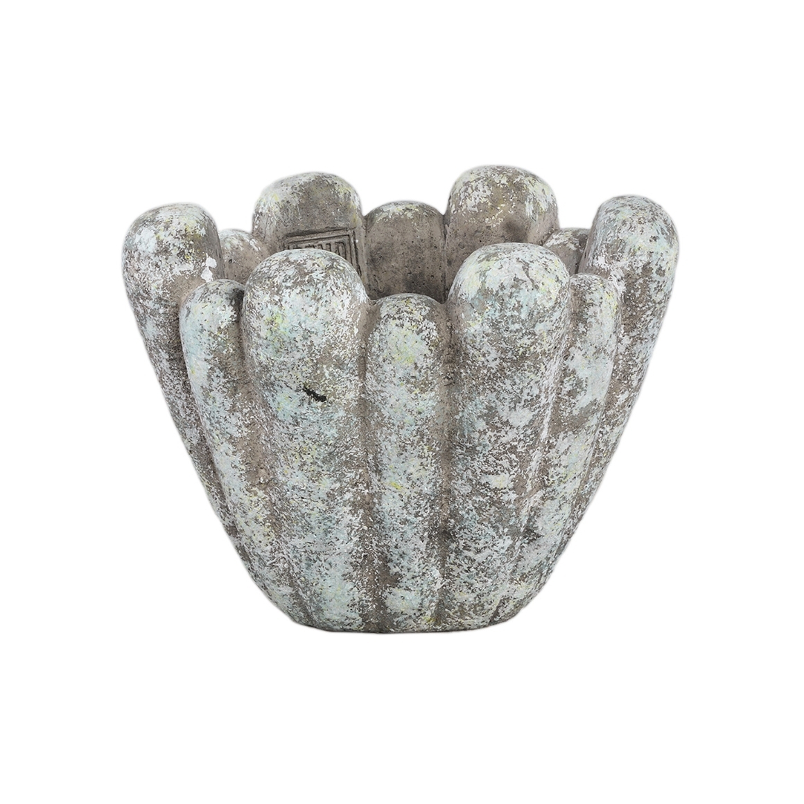 Dekorativer Blumentopf aus der Minter-Serie von PTMD, gefertigt aus Zement. Das organische Design mit vertikalen Rillen verleiht dem Topf eine besondere Optik. Geeignet für den Innenbereich oder überdachte Außenbereiche. Ideal zur Präsentation von Pflanzen in modernen Einrichtungskonzepten.