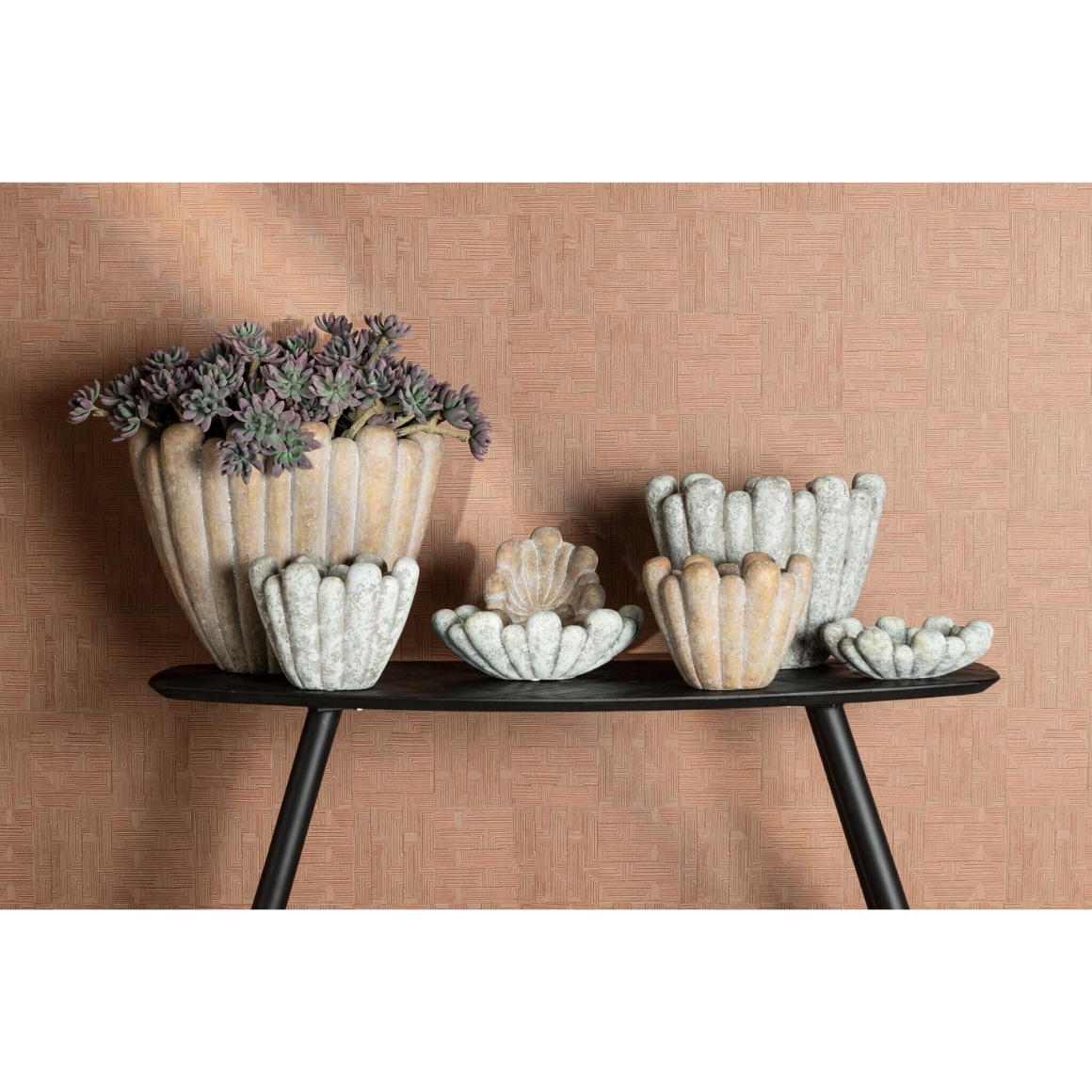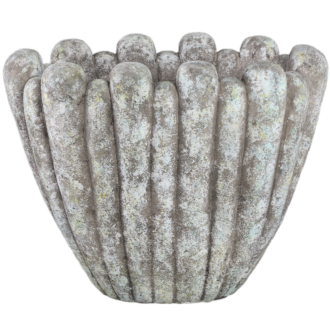 Dekorativer Blumentopf aus der Minter-Serie von PTMD, gefertigt aus Zement. Das organische Design mit vertikalen Rillen verleiht dem Topf eine besondere Optik. Geeignet für den Innenbereich oder überdachte Außenbereiche. Ideal zur Präsentation von Pflanzen in modernen Einrichtungskonzepten.