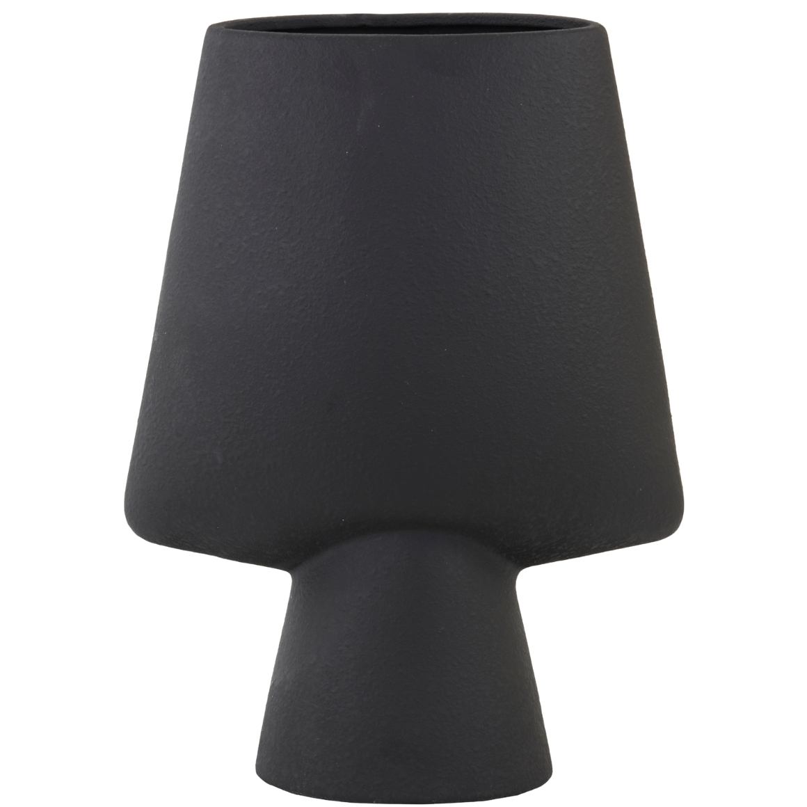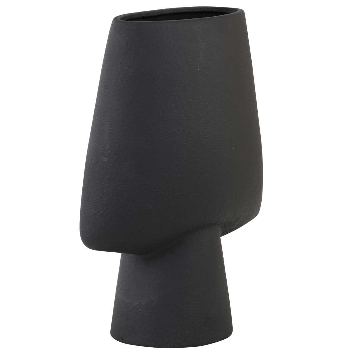 Diese Keramikvase besticht durch ihre skulpturale Form und die matte schwarze Oberfläche, die ihr ein markantes und stilvolles Aussehen verleihen. Die klaren, grafischen Linien machen sie zu einem echten Blickfang in jedem Raum. Perfekt als dekoratives Objekt – mit oder ohne Blumen – und gut kombinierbar mit anderen Accessoires für ein stimmiges Gesamtbild.