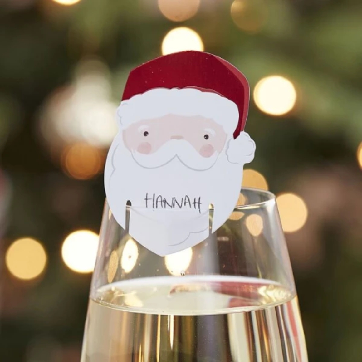 Set mit 12 Ginger Ray Platzkarten in Form eines Weihnachtsmanns, 7,5 cm groß. Ideal zum Personalisieren von Gläsern beim Weihnachtsessen oder bei Feiern. Die Karten lassen sich einfach am Glasrand befestigen und sorgen für eine festliche Tischdekoration.