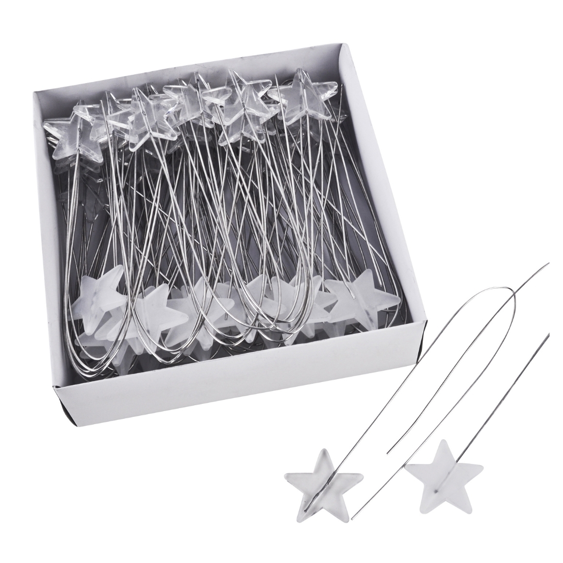 Dekorativer Stecker mit Stern in Weiss und Transparent. Das Set enthaelt 72 Stueck mit matten und klaren Sternen von etwa 4,5 cm an einem Metalldraht. Gesamte Laenge ca. 40 cm. Geeignet fuer Gestecke, Geschenkdekoration oder Tischdekoration.