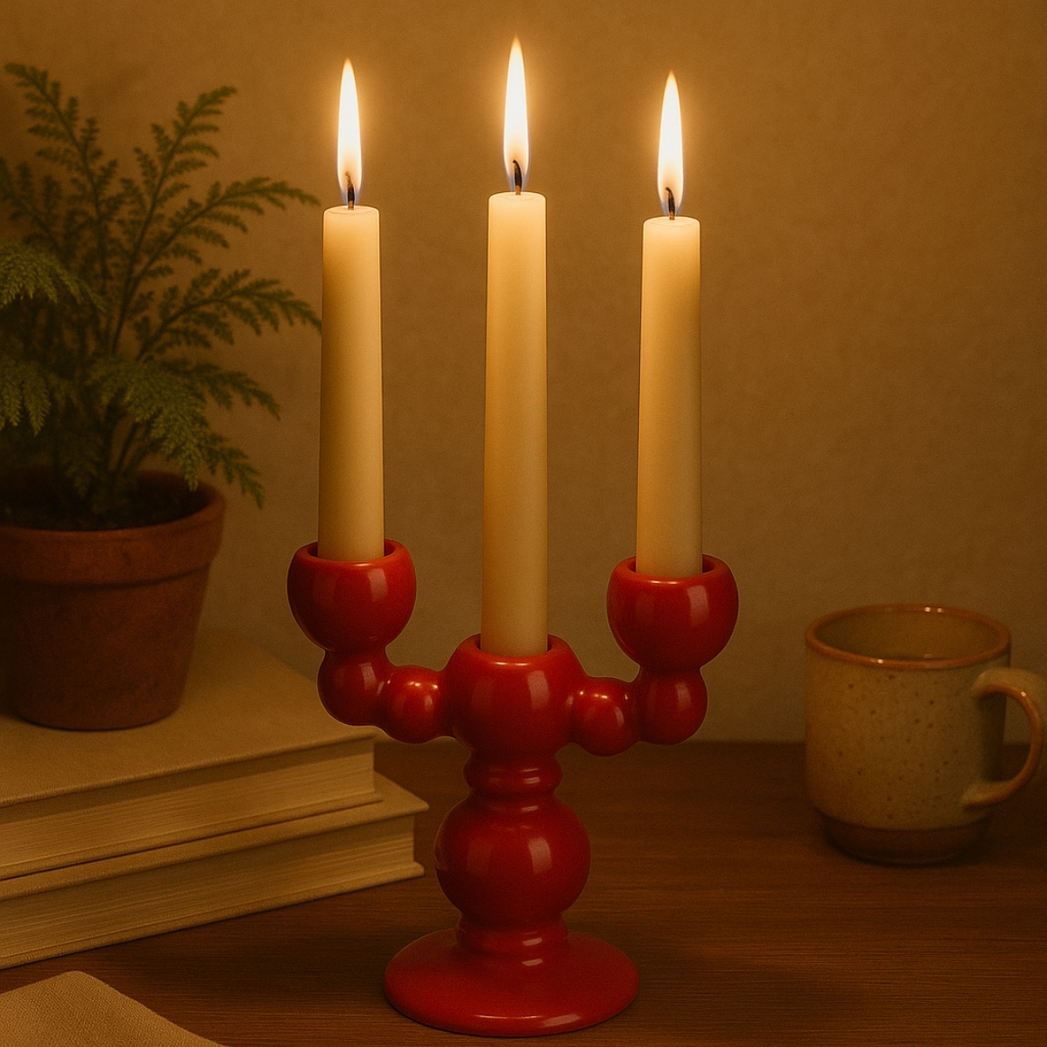 Dieser stilvolle Kerzenhalter aus der Kollektion Seasons ist ein moderner Blickfang für Ihren Tisch. Er ist für drei Tischkerzen (2,4 cm) geeignet und in Rot oder Grün erhältlich. Aus Keramik gefertigt und mit einer glänzenden Oberfläche versehen, verleiht er Ihrer Einrichtung einen warmen und stimmungsvollen Touch. Ideal für den täglichen Gebrauch und festliche Anlässe.
