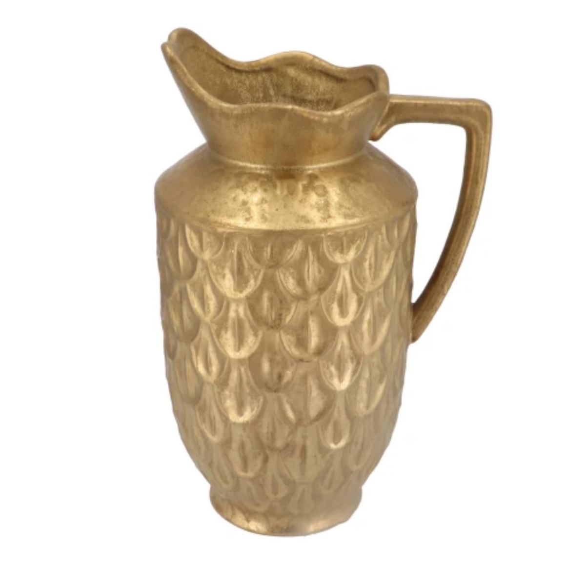 Keramikvase in Krugform mit dekorativem Prägemuster und gewelltem Schüttrand. Die schwarze Oberfläche verleiht der Vase einen modernen Look mit klassischem Touch. Geeignet als dekorativer Akzent oder gefüllt mit Trockenblumen. Die Vase ist wasserdicht, aber Vorsicht beim Ausgießen von Wasser.