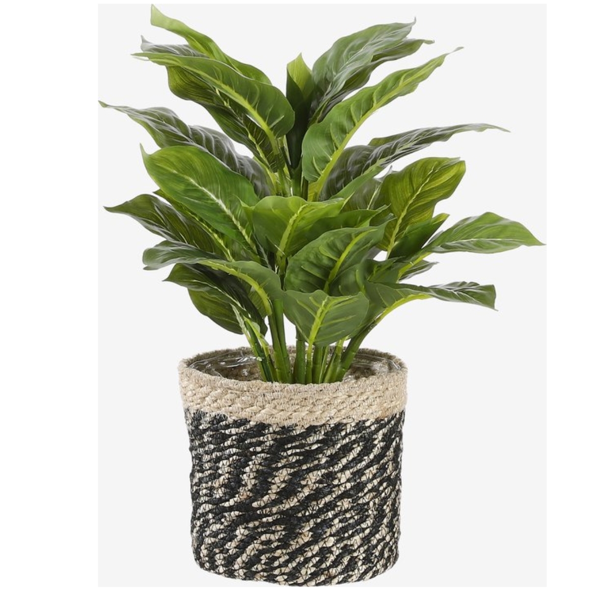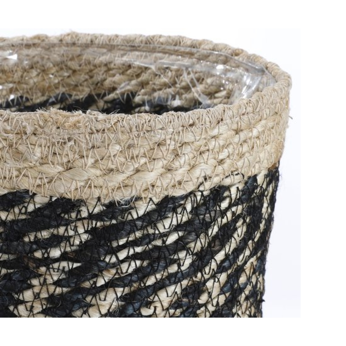 Dieser Korb mit einem Durchmesser von 20 cm hat eine Kunststoffauskleidung und ist daher für Pflanzen oder dekorative Zwecke geeignet. Der Bonaparte-Korb hat ein natürliches schwarzes Muster, das zu verschiedenen Einrichtungsstilen passt. Ideal als Pflanzen- oder Aufbewahrungskorb für kleine Accessoires.