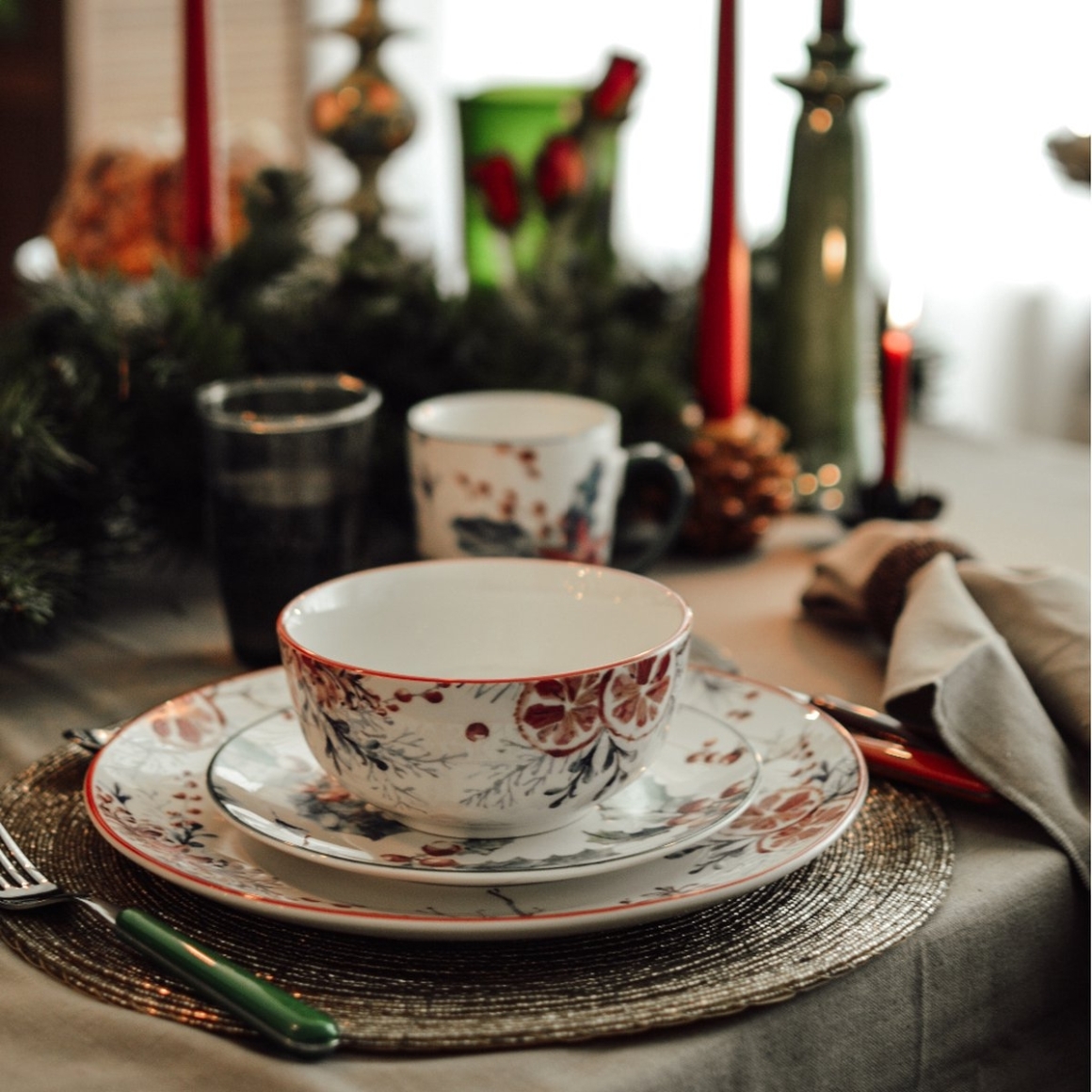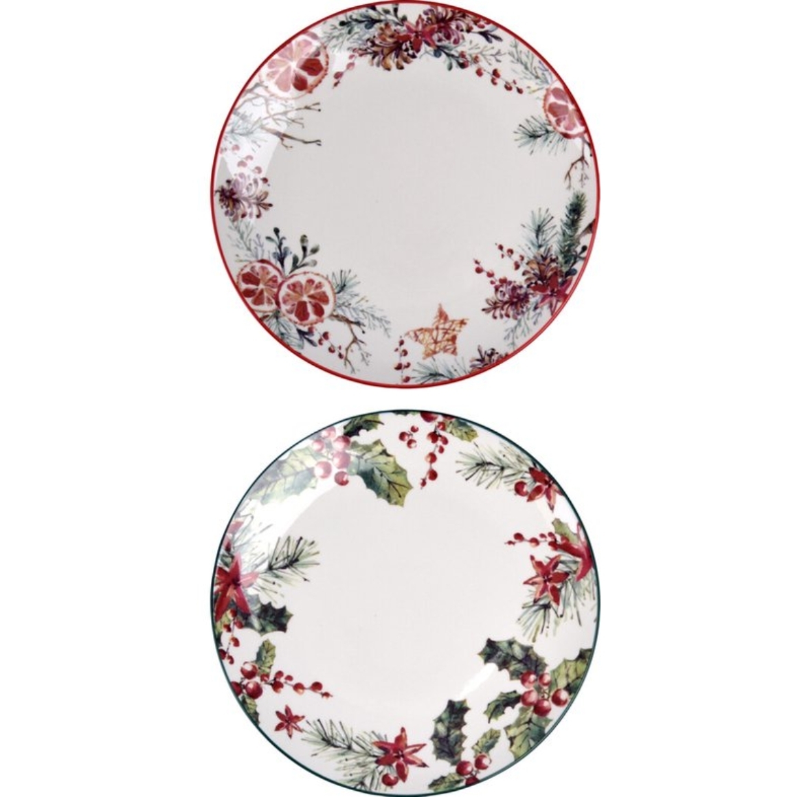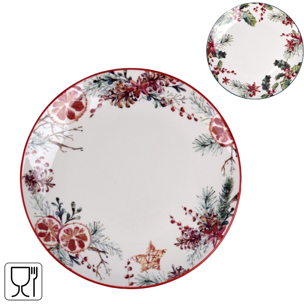 Artikel wird sortiert geliefert, der Preis gilt pro Stück. Siaki Porzellanteller mit festlichem Dekor, Durchmesser 27 cm. Perfekt für Hauptgerichte oder besondere Anlässe. Geeignet für Spülmaschine und Mikrowelle.