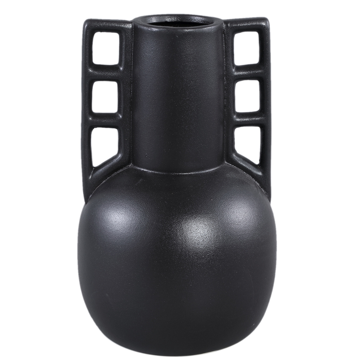 Die PTMD Vase Essa dunkelbraun 30 cm ist eine zeitgemaesse Vase aus Keramik mit matter Oberflaeche. Die dunkelbraune Farbe und die offenen Griffe an den Seiten verleihen dem Design einen markanten Charakter. Durch die hoehere Ausfuehrung eignet sich diese Vase als Blickfang auf Tisch, Sideboard oder in einer dekorativen Anordnung. Hoehe 30 cm.