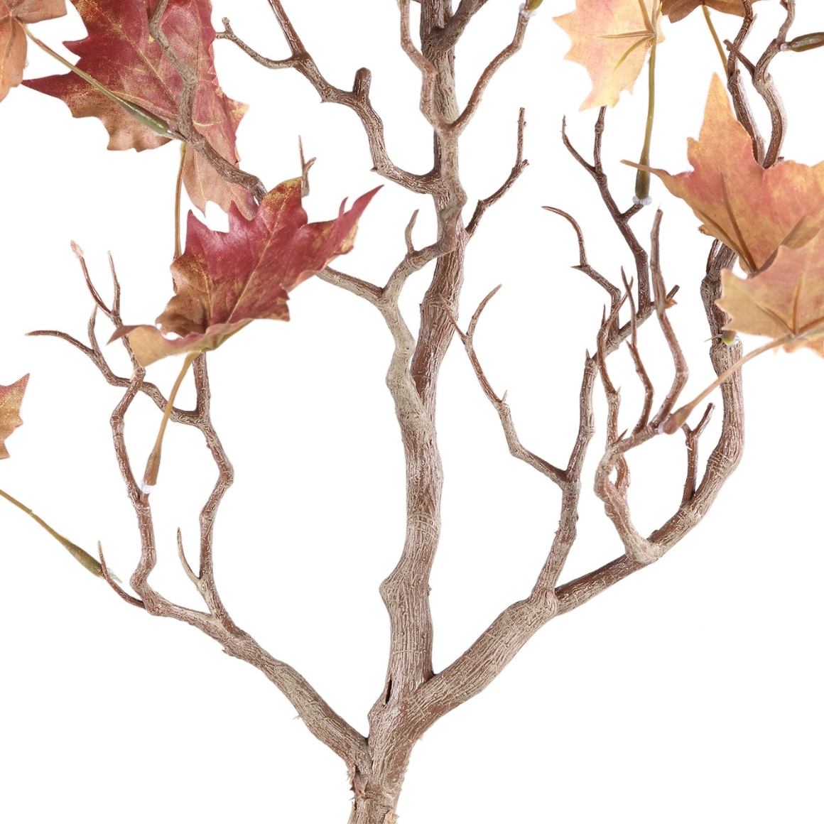 Dekorativer Kunstzweig mit mehreren Seitenzweigen und realistischen Ahornblättern in warmen Herbsttönen. Der Zweig ist leicht biegsam und ideal als stimmungsvolle Herbstdekoration in einer Vase oder einem Arrangement.
