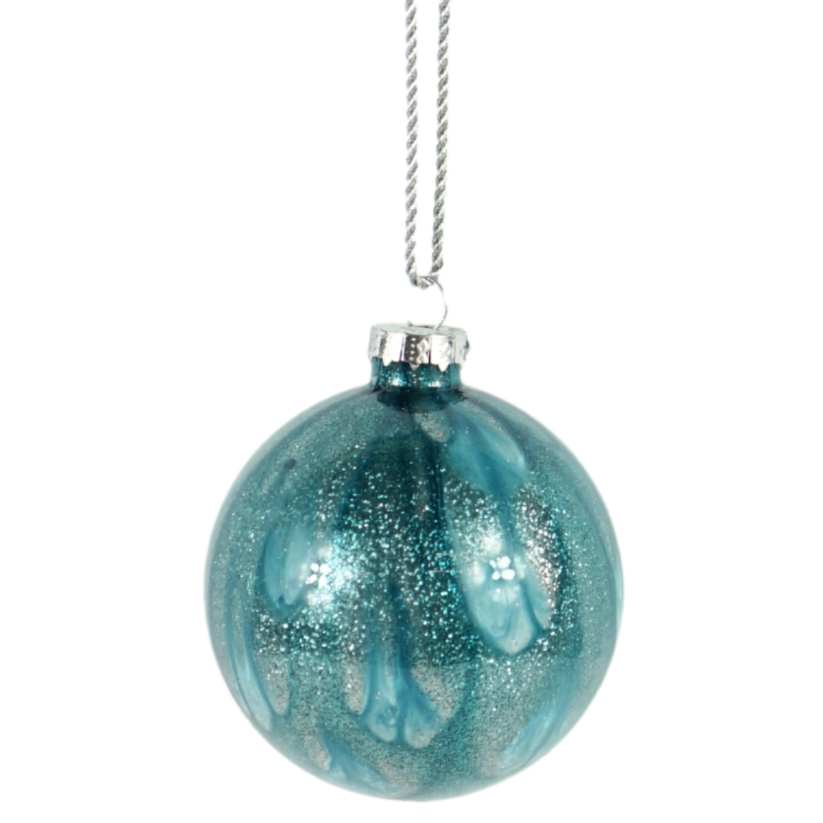 Wilko Weihnachtskugel blau marmoriert Glitzereffekt 8 cm 6 Stück