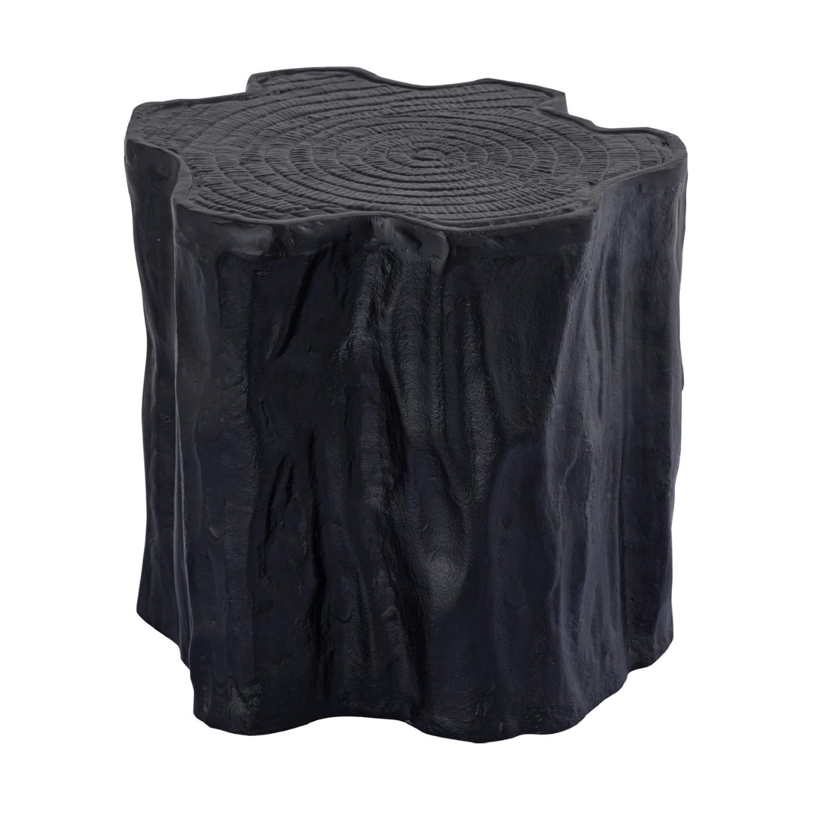 Der PTMD Fennah Beistelltisch besteht aus Aluminium mit schwarzer Oberfläche und hat die Form eines Baumstamms. Dieser Tisch verbindet robustes Design mit natürlicher Ausstrahlung und ist eine stilvolle Ergänzung für jedes Interieur.