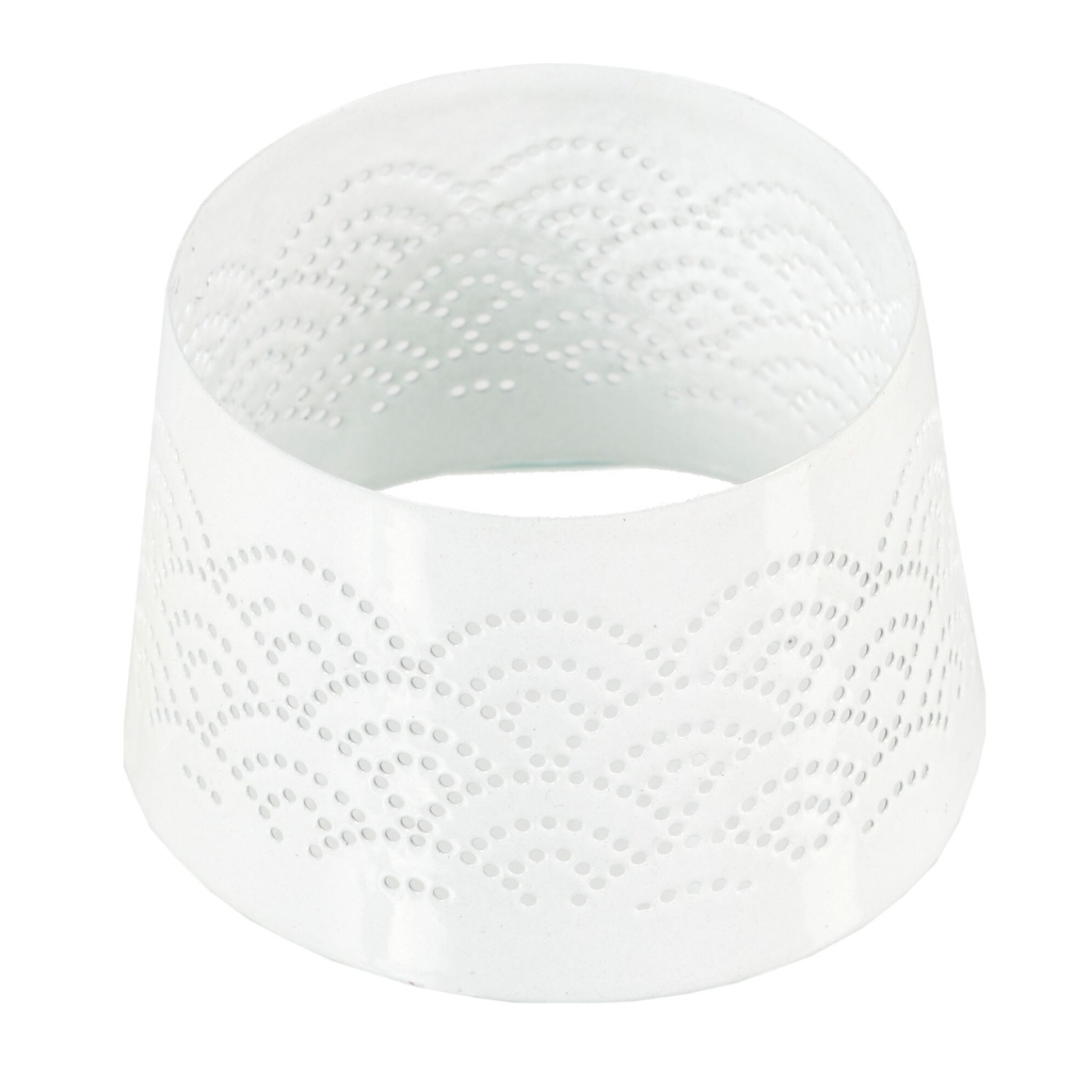 Weisses Schirmchen aus Metall mit Lace Design. Durchmesser oben Ø 8,5 cm und unten Ø 7 cm. Erzeugt ein elegantes Lichtmuster und passt zu jeder Tischdekoration. Wiederverwendbar.
