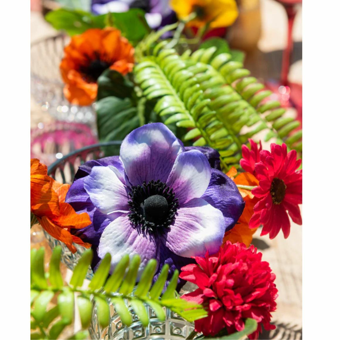 Kunstblume Anemone mit einer Laenge von 40 cm in violetter Farbe mit intensiver Optik. Ausgestattet mit einem biegsamen Stiel, der sich einfach in Straeusse oder Gestecke integrieren laesst. Sorgt fuer einen dekorativen Akzent mit dauerhafter Ausstrahlung ohne Pflegeaufwand.