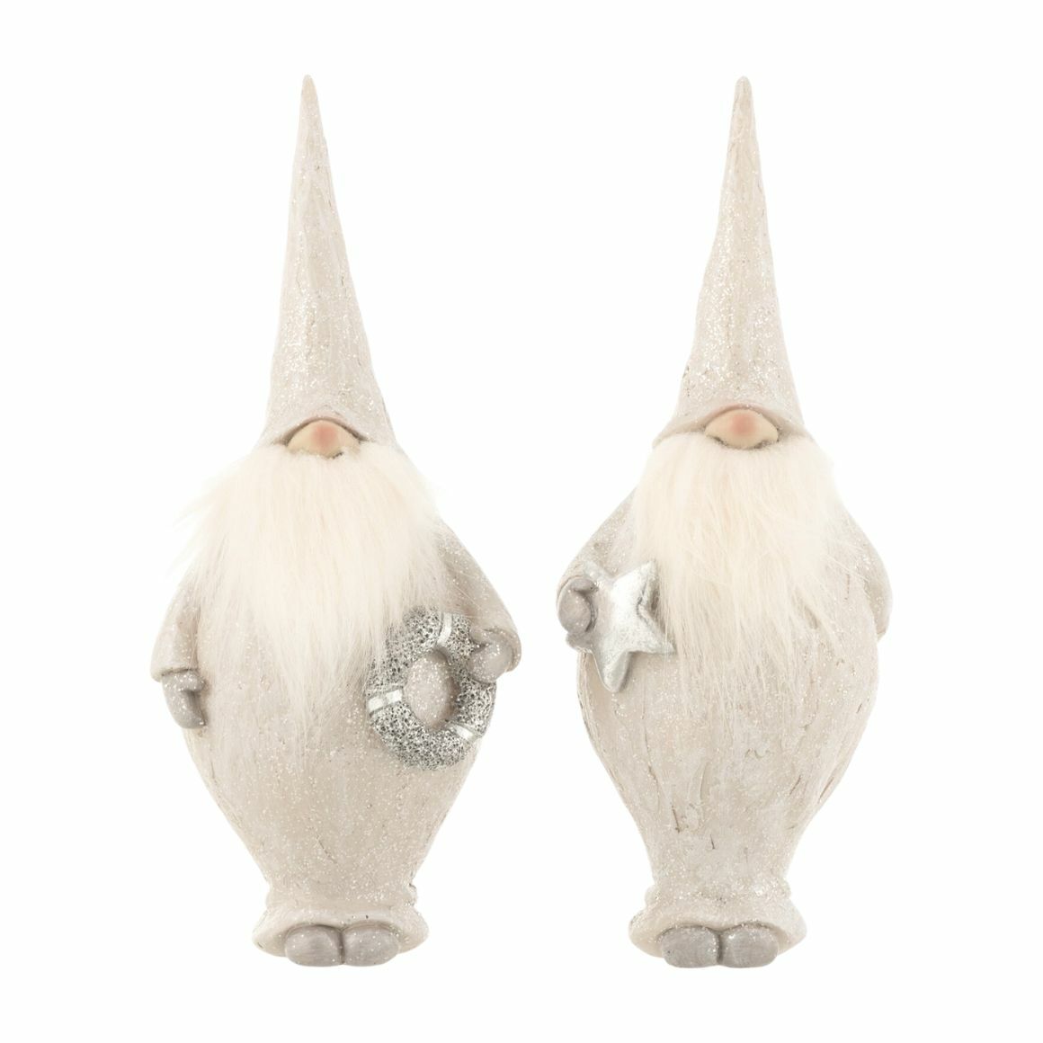 Artikel wird sortiert geliefert, der Preis gilt pro Stueck. Dekorative Figur eines Weihnachtsmann Gnome mit einer Hoehe von 25 cm, gefertigt aus Polyresin. Mit flauschigem Bart und dezentem Glitzer, in Naturtoenen mit silberfarbenen Akzenten ausgefuehrt. Geeignet als stimmungsvolle Dekoration zur Weihnachtszeit.