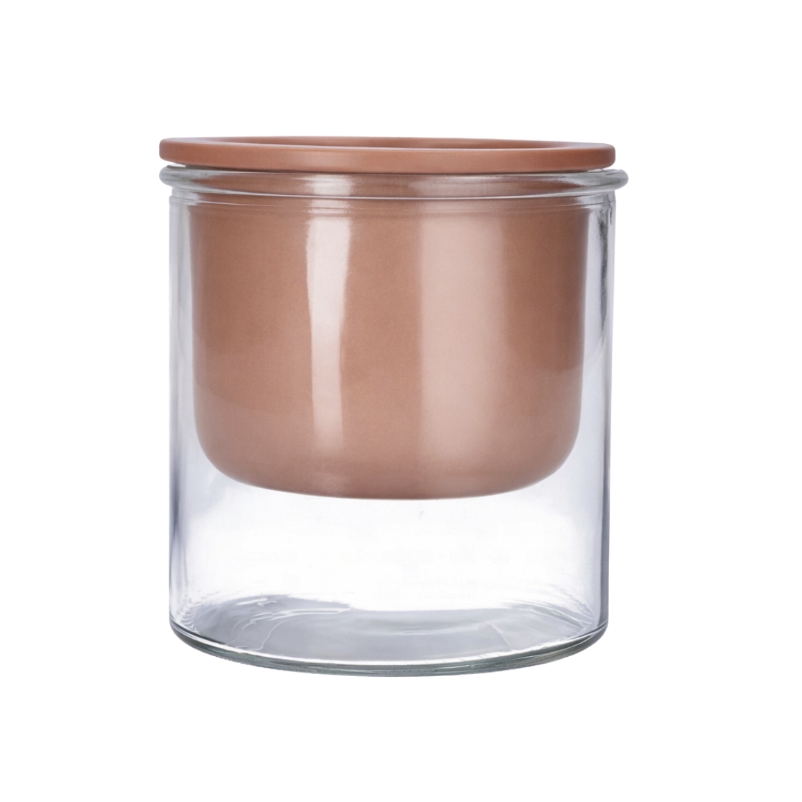 Selbstbewaessernder Blumentopf Malga in Braun mit einem Durchmesser von 12,5 cm. Der Topf besteht aus Glas mit einem Innentopf aus Keramik. Dank des selbstbewaessernden Systems wird die Pflanze gleichmaessig mit Wasser versorgt. Ideal fuer Kraeuter oder kleine Pflanzen.