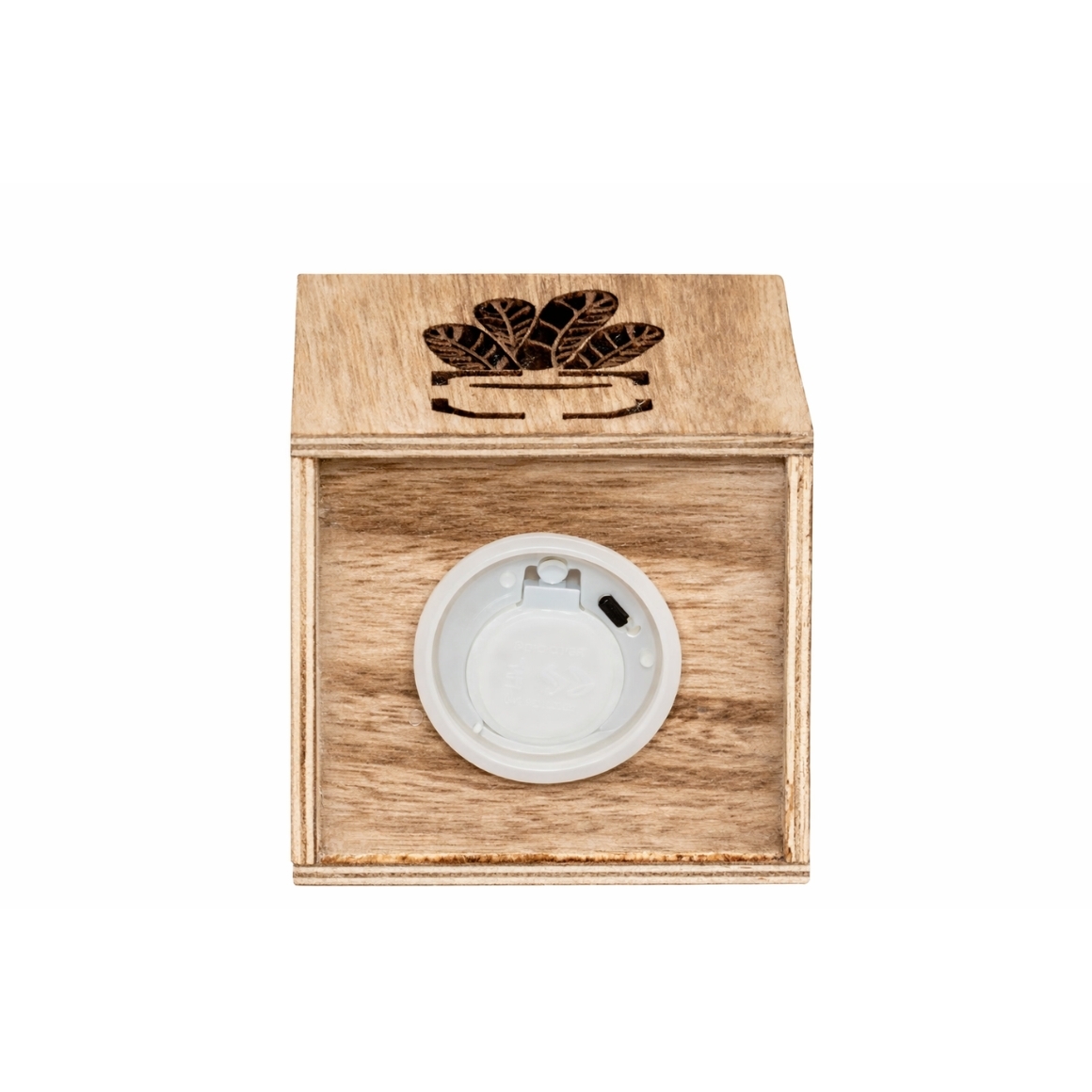 Artikel wird sortiert geliefert, der Preis gilt pro Stueck. Die Out of the Blue Kunstpflanze steht in einem Holztopf mit ausgeschnittenem Blattmotiv und integrierter LED Beleuchtung. Das warme Licht scheint durch die Aussparung und sorgt fuer eine stimmungsvolle Optik. Funktioniert mit 1 x CR2032 Batterien (enthalten). Schoen als Dekoration auf Tisch, Schrank oder Fensterbank und auch als Geschenk geeignet.