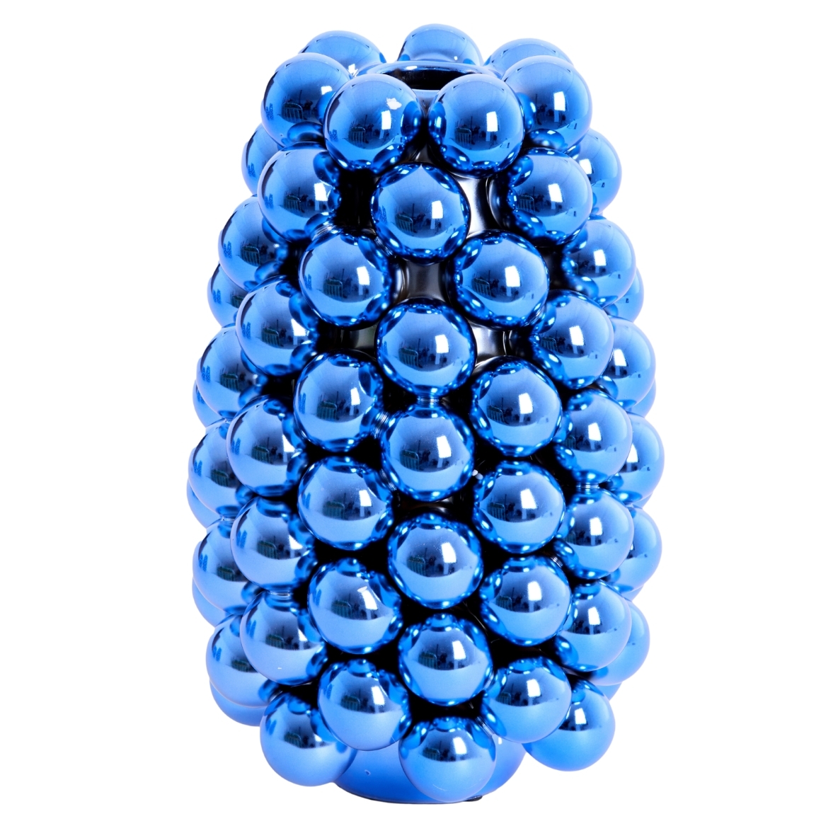 Die Light & Living Vase Biyang ist eine Keramikvase mit metallisch blauer Oberflaeche und einem auffaelligen Design aus mehreren kugelfoermigen Elementen. Das moderne Design macht diese Vase zu einem echten Blickfang im Innenraum. Geeignet als dekoratives Element fuer Feiertage, besondere Anlaesse oder als stilvoller Akzent auf Tisch oder Schrank. Die Vase ist nicht wasserdicht.