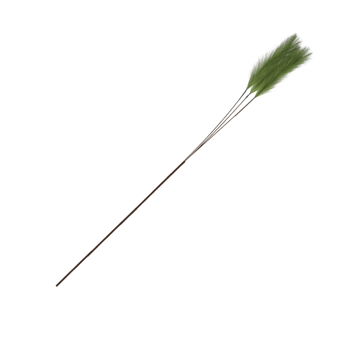 A green plume branch with 3 loose branches with plumes at the top.