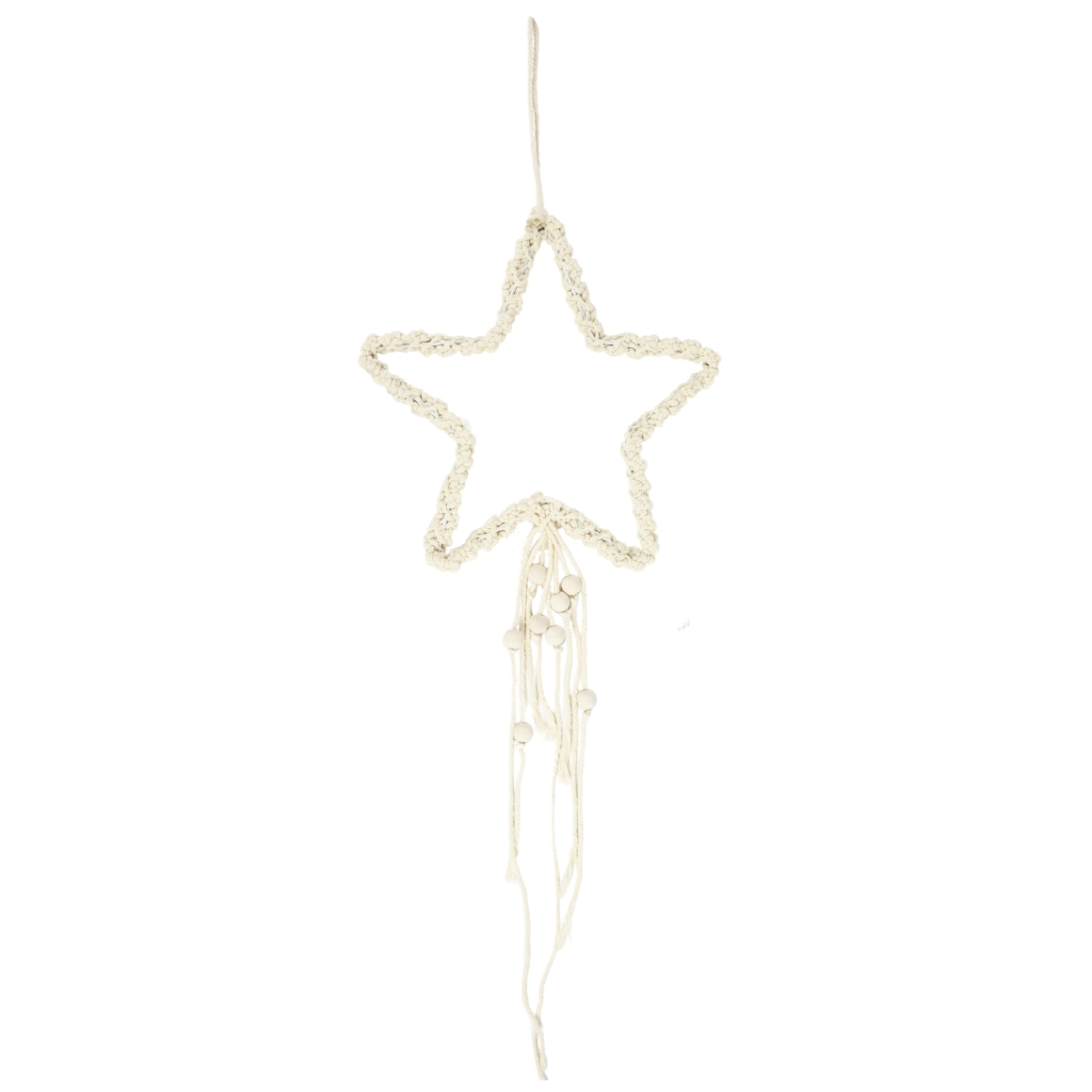 The star measures 29 x 29 cm, the garlands at the bottom are about 47 cm long and the hanging cord is about 15 cm long.