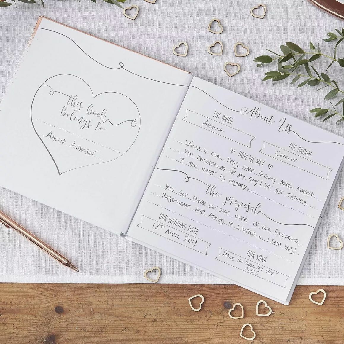 Chic wedding planner book by Ginger Ray in a rose gold-coloured design. Perfect for organising and planning every aspect of a wedding. This English-language book includes 46 pages filled with checklists, note sections and useful overviews. Measuring approximately 20.5 by 21 cm, it is easy to handle and offers ample space for detailed planning. A practical and elegant option for any bride-to-be.