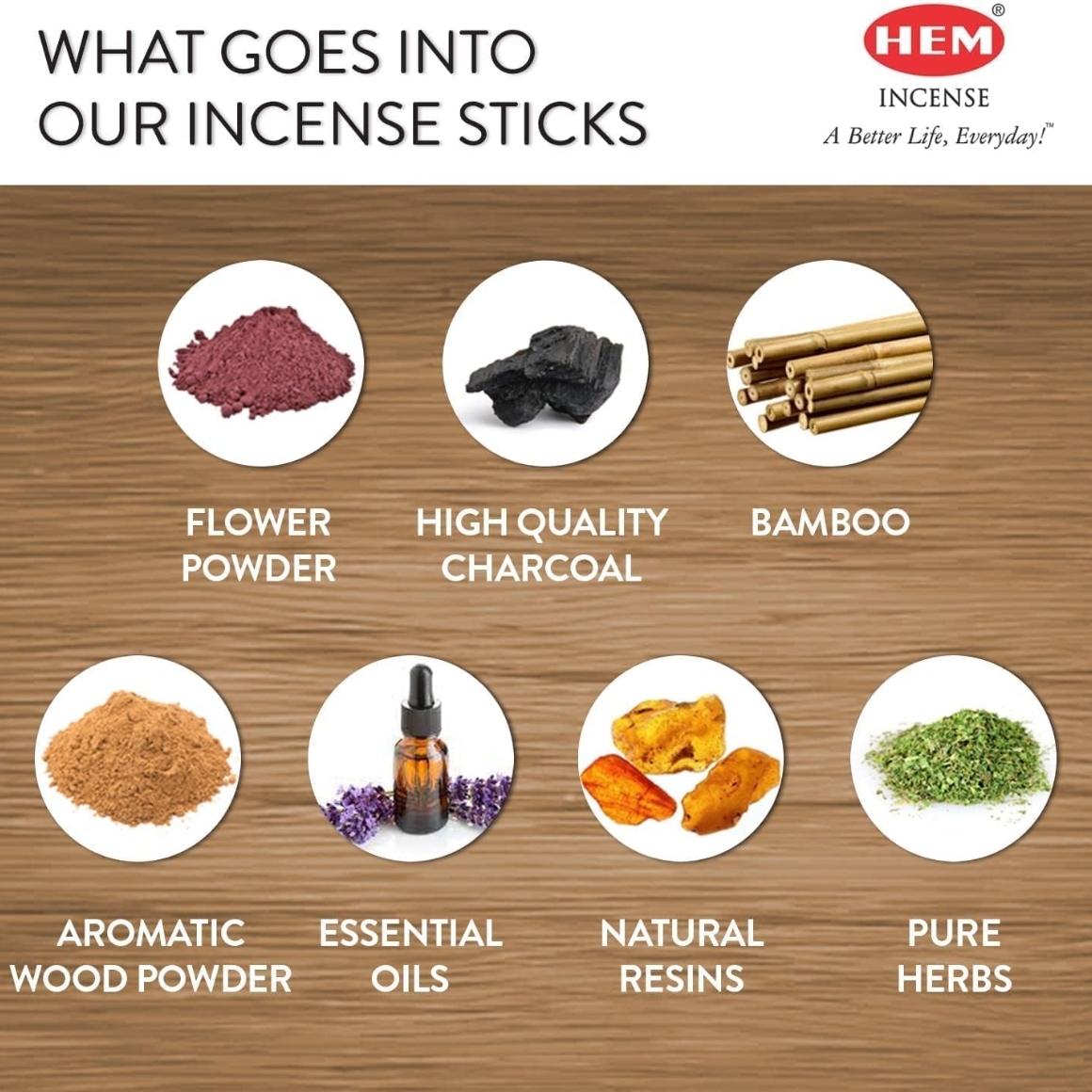 These premium masala incense sticks from HEM combine the earthy fragrance of Palo Santo with a subtle floral undertone. Each pack contains around 8 sticks (15 grams), handmade in India. Palo Santo, also known as sacred wood, is known for its calming and purifying effects and helps expel negative energy. Palo Santo Aura incense sticks emit an enchanting fragrance that lingers for a long time, creating a serene atmosphere. Perfect for meditation, spa, or enriching your interior.
