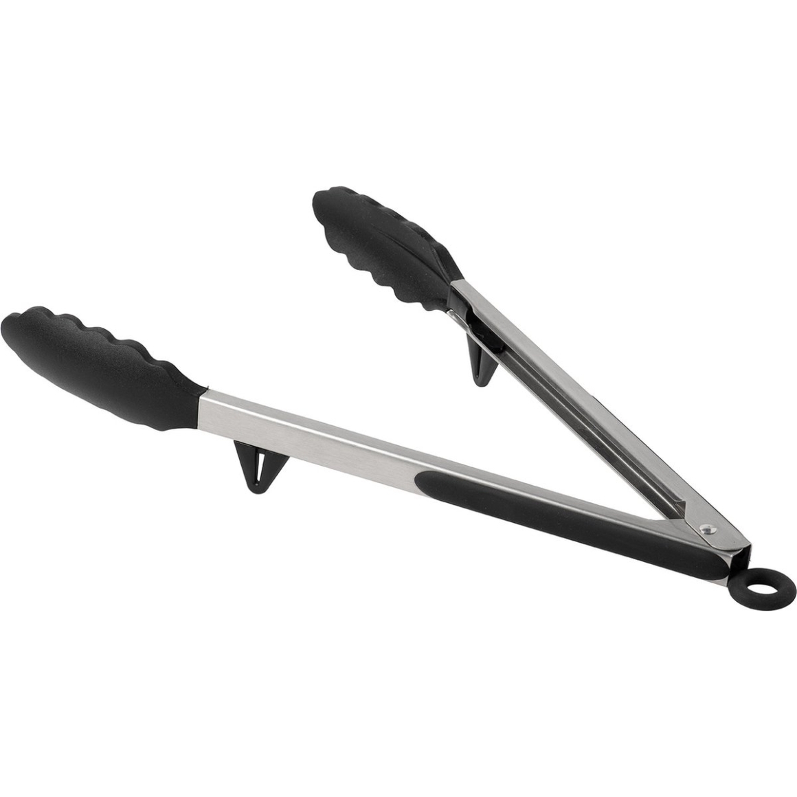 This durable kitchen tong is perfect for turning and serving meat, fish or vegetables. With a length of 35 cm, it offers great reach and control. Made of stainless steel with silicone tips that are heat resistant up to 210 degrees, this tong protects cookware from scratches. A raised edge allows it to rest off the countertop for added hygiene. The suspension eye makes it easy to lock or hang the tong. The handle includes a silicone grip for added comfort. Dishwasher safe.