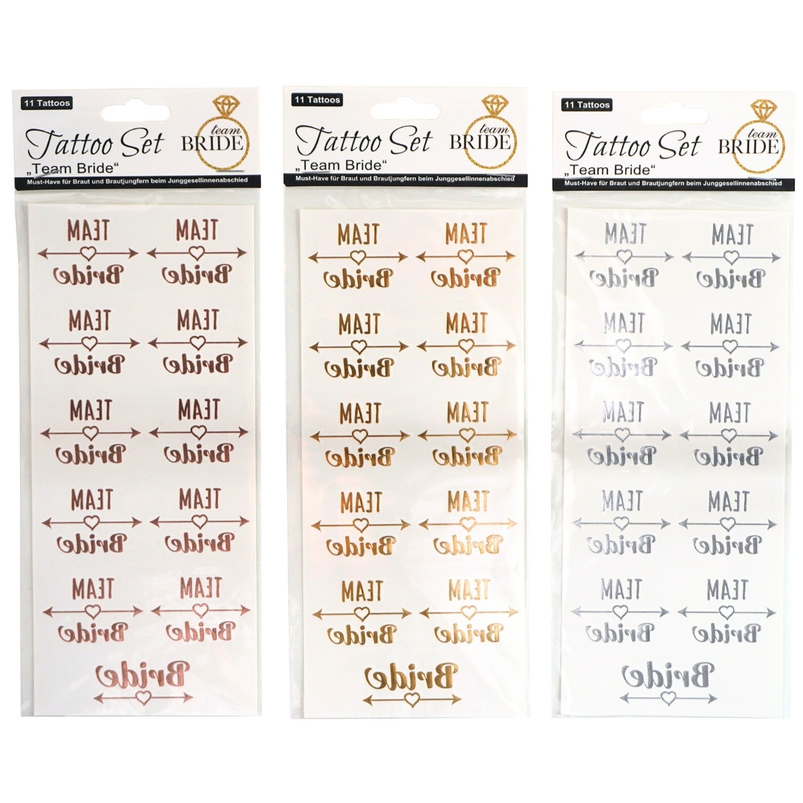 Tattoo set team bride 18 cm 3 assorted set of 11