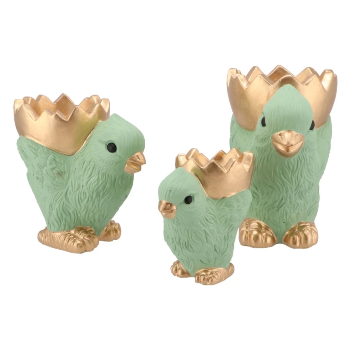 This decorative figure in the shape of a chick comes in mint green with a gold-coloured bowl on its back, shaped like an eggshell. The item is made of cement and serves as a striking accent in interior design or display. Easy to combine with other decorative objects.