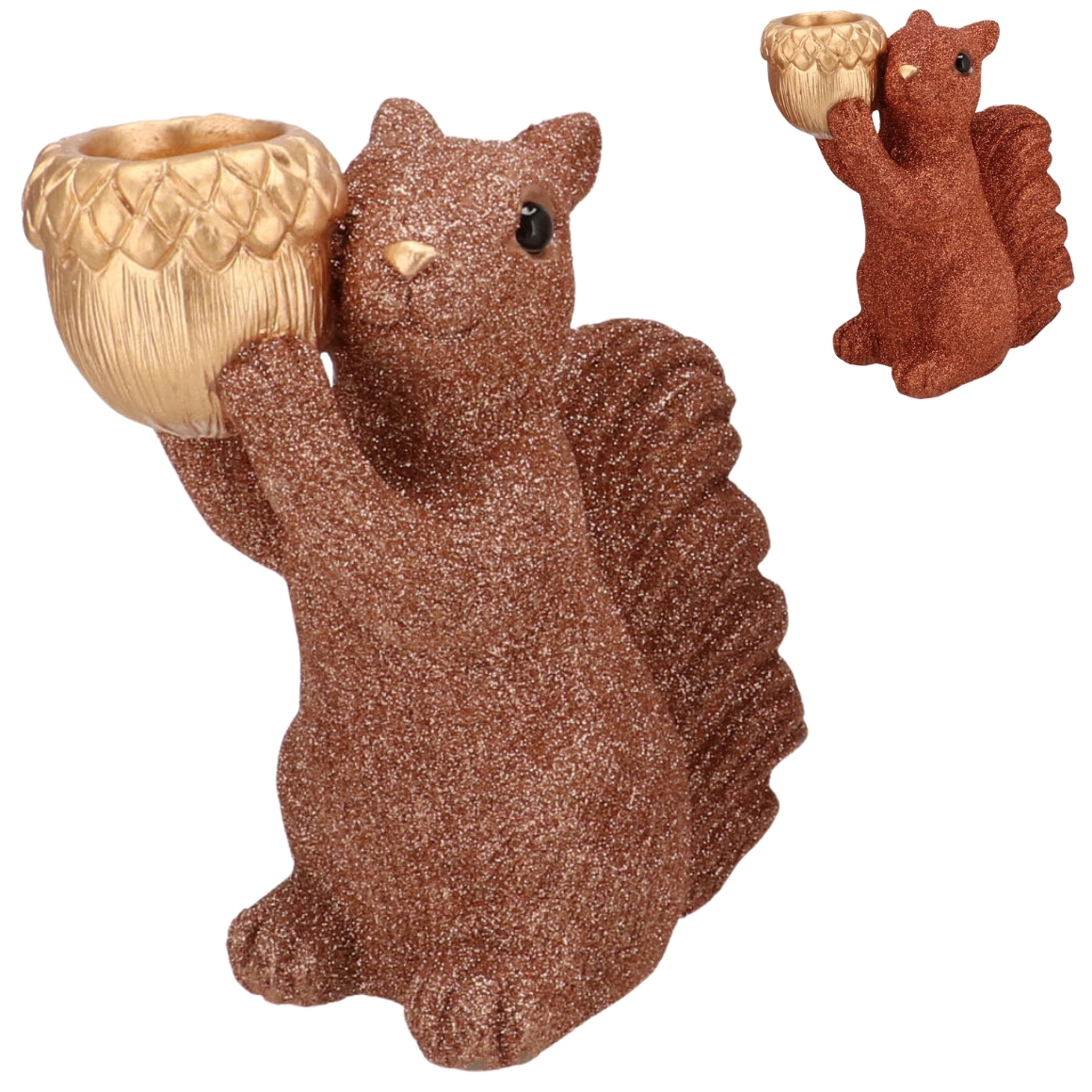 Item is supplied assorted, price is per piece. This decorative squirrel figure with bowl from the Jingle series comes in different colours. The gold-coloured bowl can be used for small decorations or a tea light. An atmospheric accent that fits perfectly in any interior or during festive occasions.