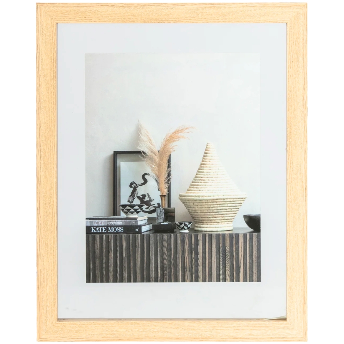 Photo frame by Woood with a natural wooden frame. Equipped with hanging hooks on the back and a transparent front for photos or prints. Suitable for photo size 34 x 44 cm, a stylish addition to any interior.