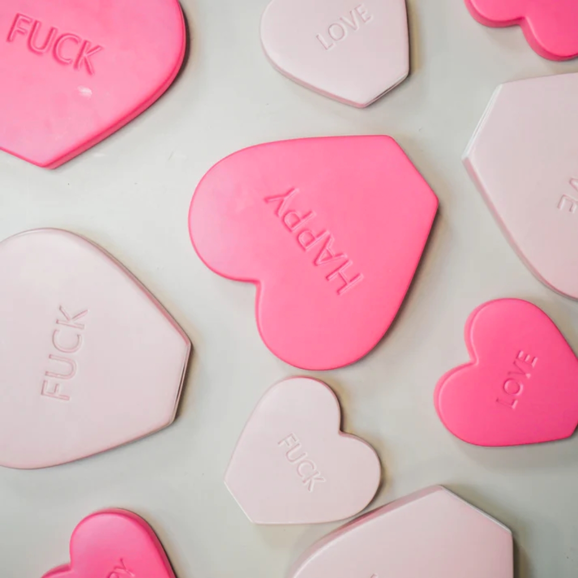 Statue Candy Heart by the Housevitamin brand is made of ceramic and has a striking, trendy design. Inspired by the well-known heart-shaped candies with texts, it features a rebellious or loving message. A playful statement piece that adds love and humour to any interior.