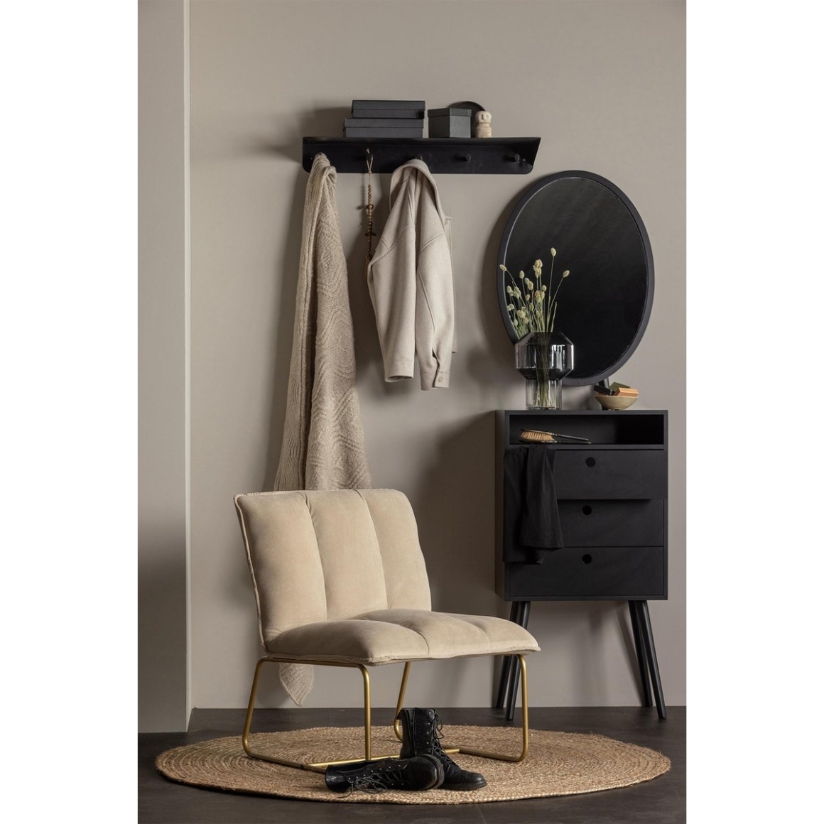 The Kenan coat rack by WOOOD is made of black powder-coated metal. Features five hooks and a shelf for extra storage. Ideal for coats, scarves or accessories. Each hook holds up to 1 kg and the shelf up to 2 kg. Rounded corners give the design a modern look. Width: 80 cm.