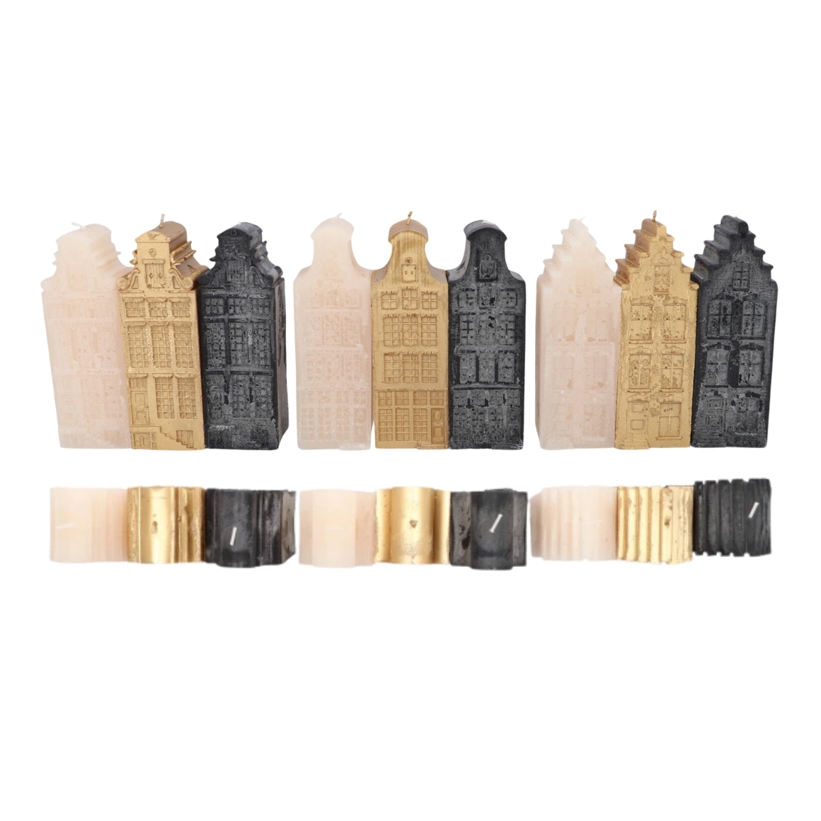 Daan Kromhout candles from the Adam House series come in the shape of characteristic Amsterdam canal houses. The set contains 3 models in 3 colours and brings an atmospheric Dutch accent to any interior. Burning hours unknown. Nice to collect.