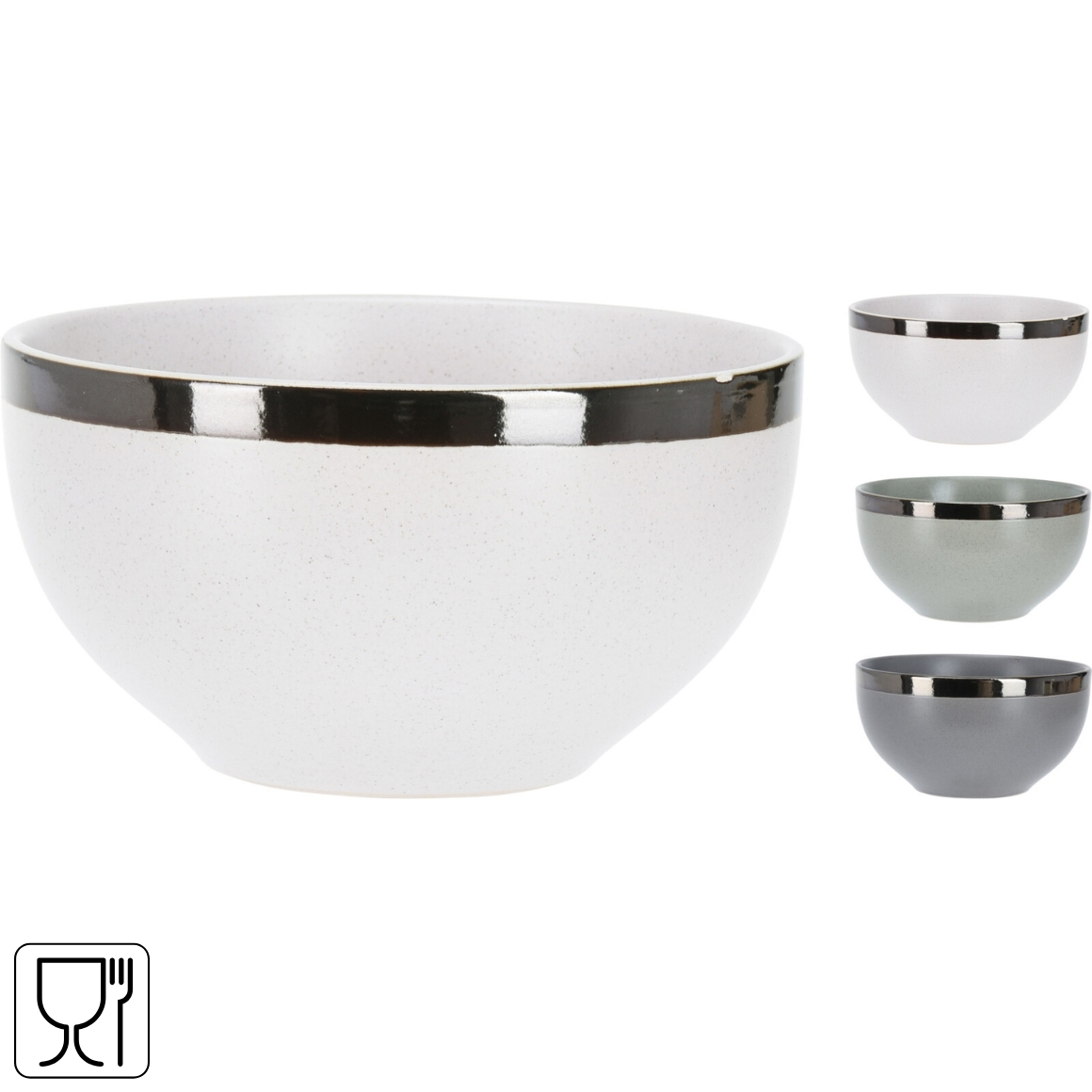 Item is supplied assorted, price per piece. This Siaki bowl of 750 ml features a contemporary design with a glossy rim finish. Made of sturdy stoneware and perfect for serving snacks, salads or breakfast. Dishwasher and microwave safe.