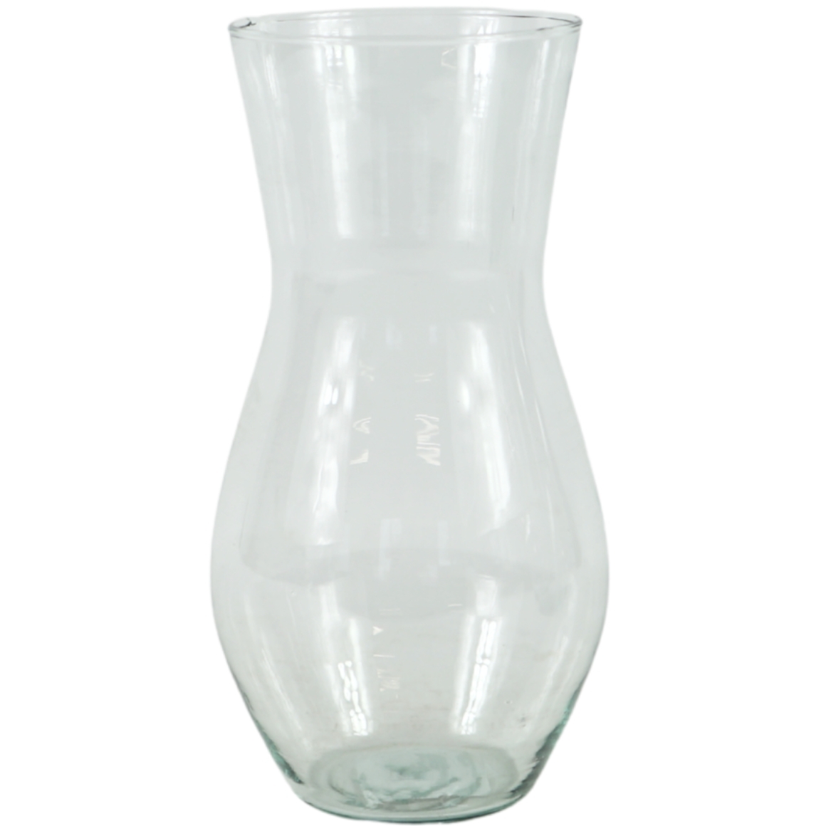 Transparent glass vase with narrow neck and round base. The Nicola vase is 24 cm high and ideal for medium-sized bouquets or single flowers. Its timeless design fits any interior and provides an elegant look on a table or windowsill.