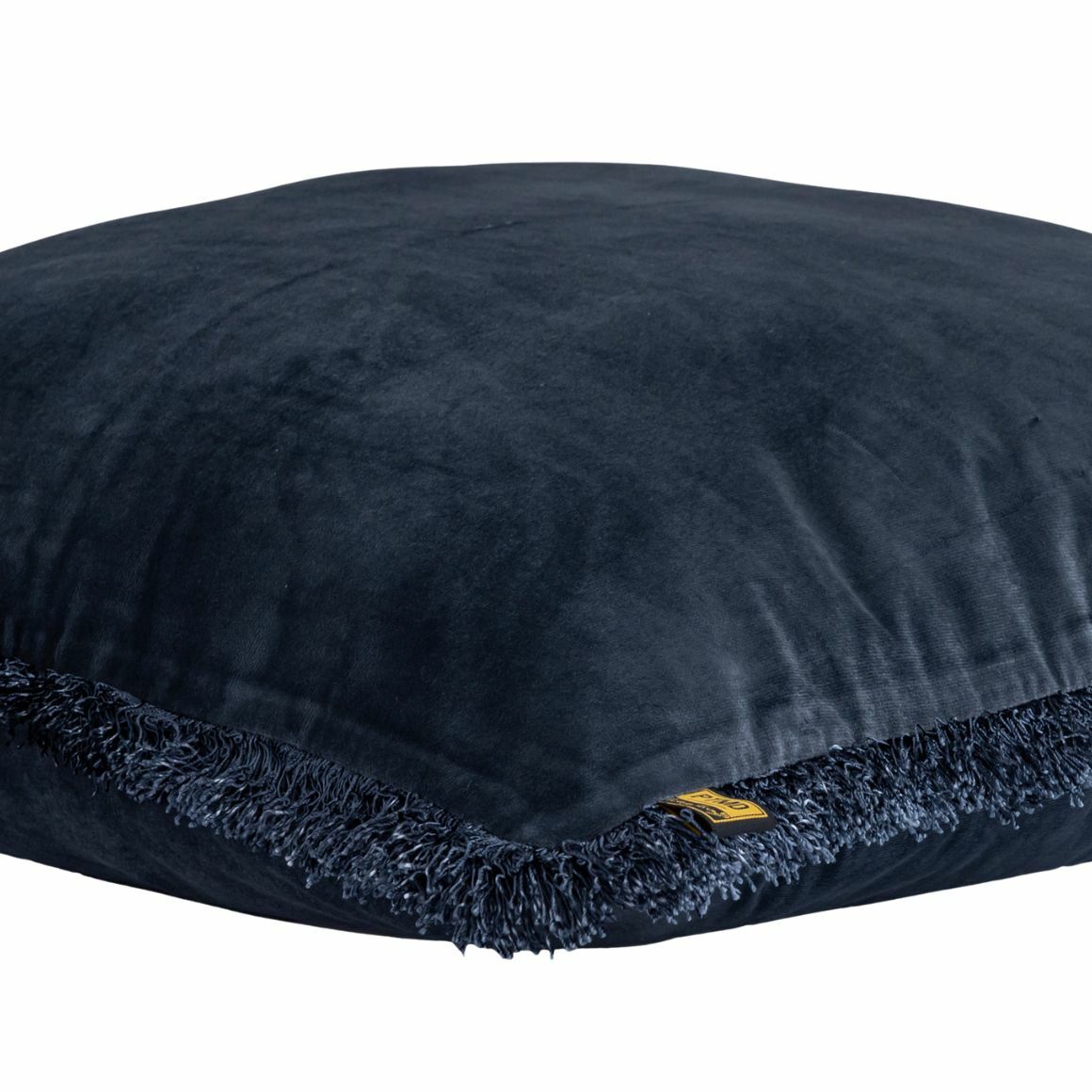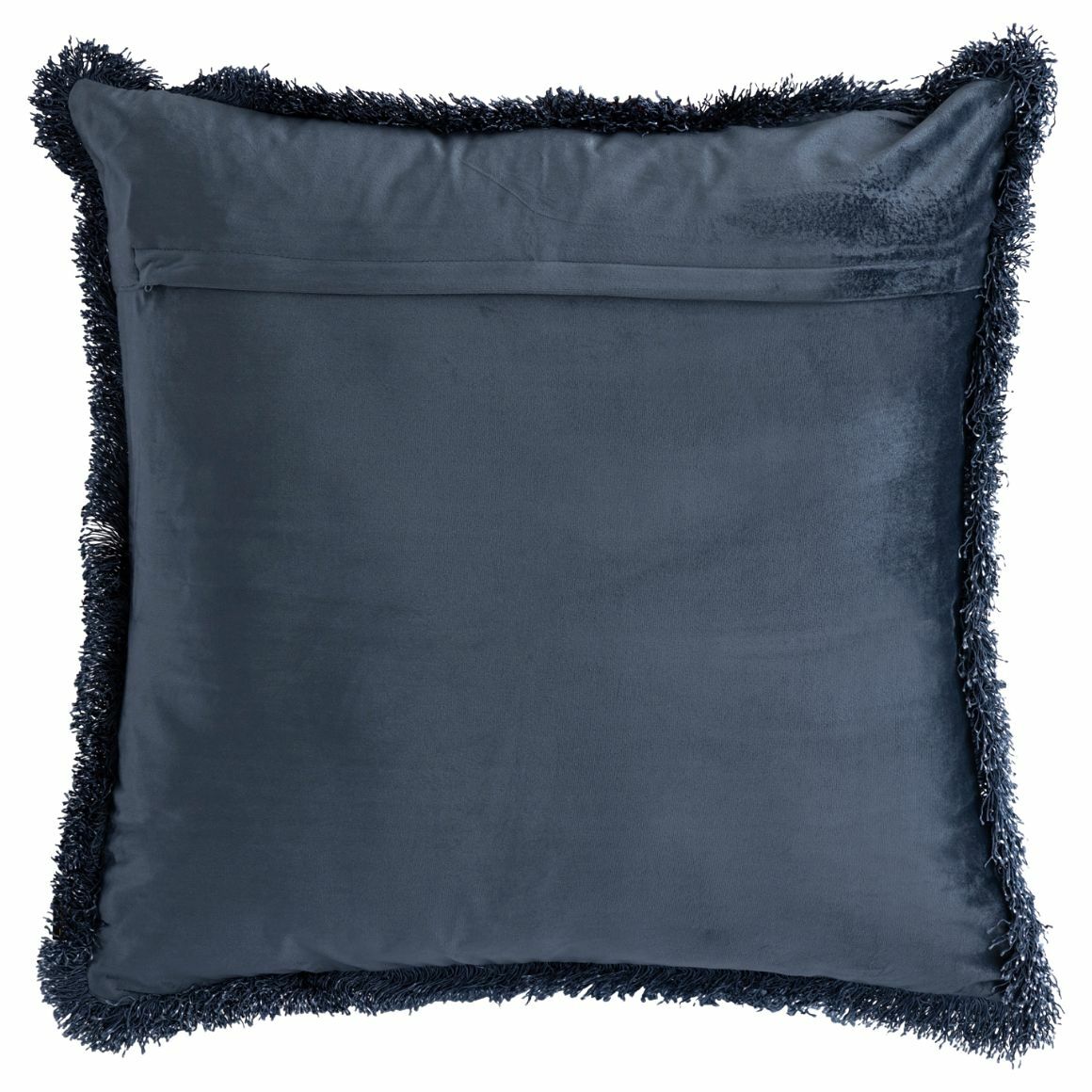 The PTMD cushion Nous velvet blue 60 x 60 cm is a square decorative cushion with a modern chic look. The plain blue velvet fabric is finished with subtle fringes around the edges. The cover is removable thanks to a zipper. Suitable for decorative use on a sofa or armchair. Dry clean only, not suitable for washing machine.