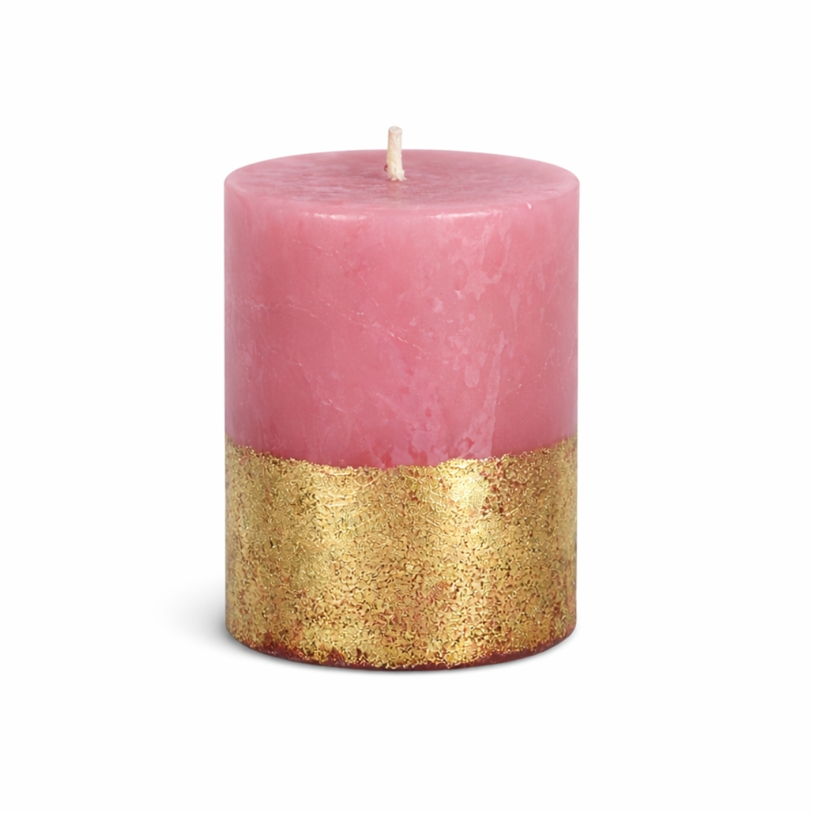 Gala pillar candle gold/pink 6,5 x 8 cm