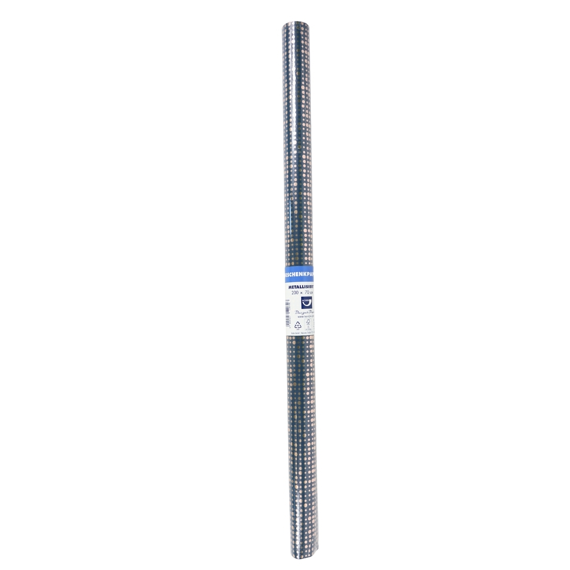 This gift wrap roll measures a generous 200 by 70 cm and is made from sturdy paper. Its consistent quality makes it ideal for large packaging tasks. The blue and gold-coloured design adds a touch of luxury to any occasion.