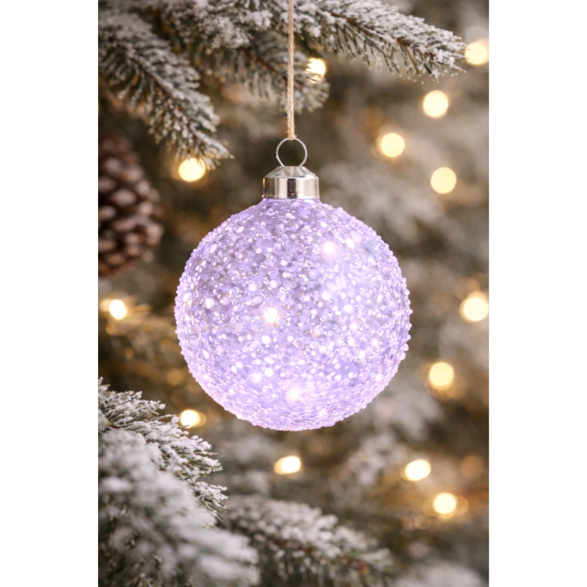Set of four glass Christmas baubles with a speckled texture. The slightly transparent finish creates a beautiful depth effect in the Christmas tree. Finished with a jute hanging cord of approx. 8 cm. Packed in a decorative gift box.