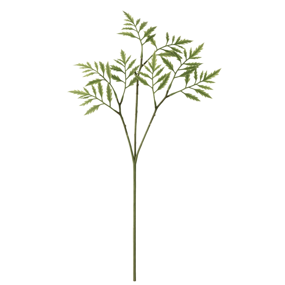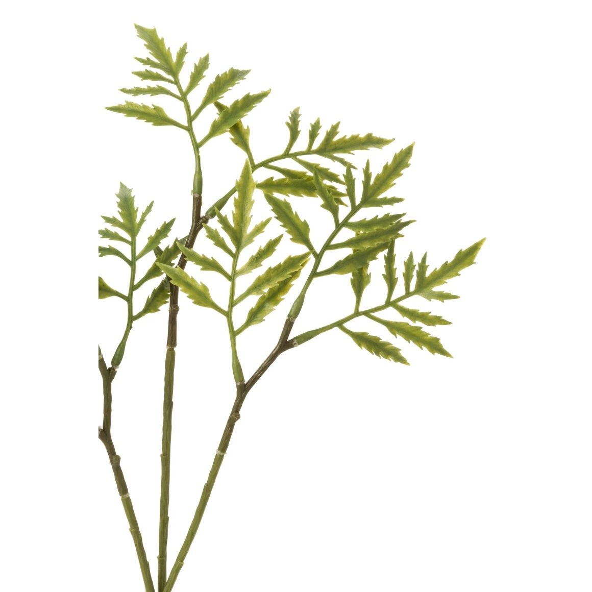 Artificial branch by J-Line in the shape of a fern, finished in green. Ideal as filler for a bouquet or as an addition to a floral arrangement. The flexible stem is easy to shape as desired. Provides a lasting green accent without the need for maintenance.