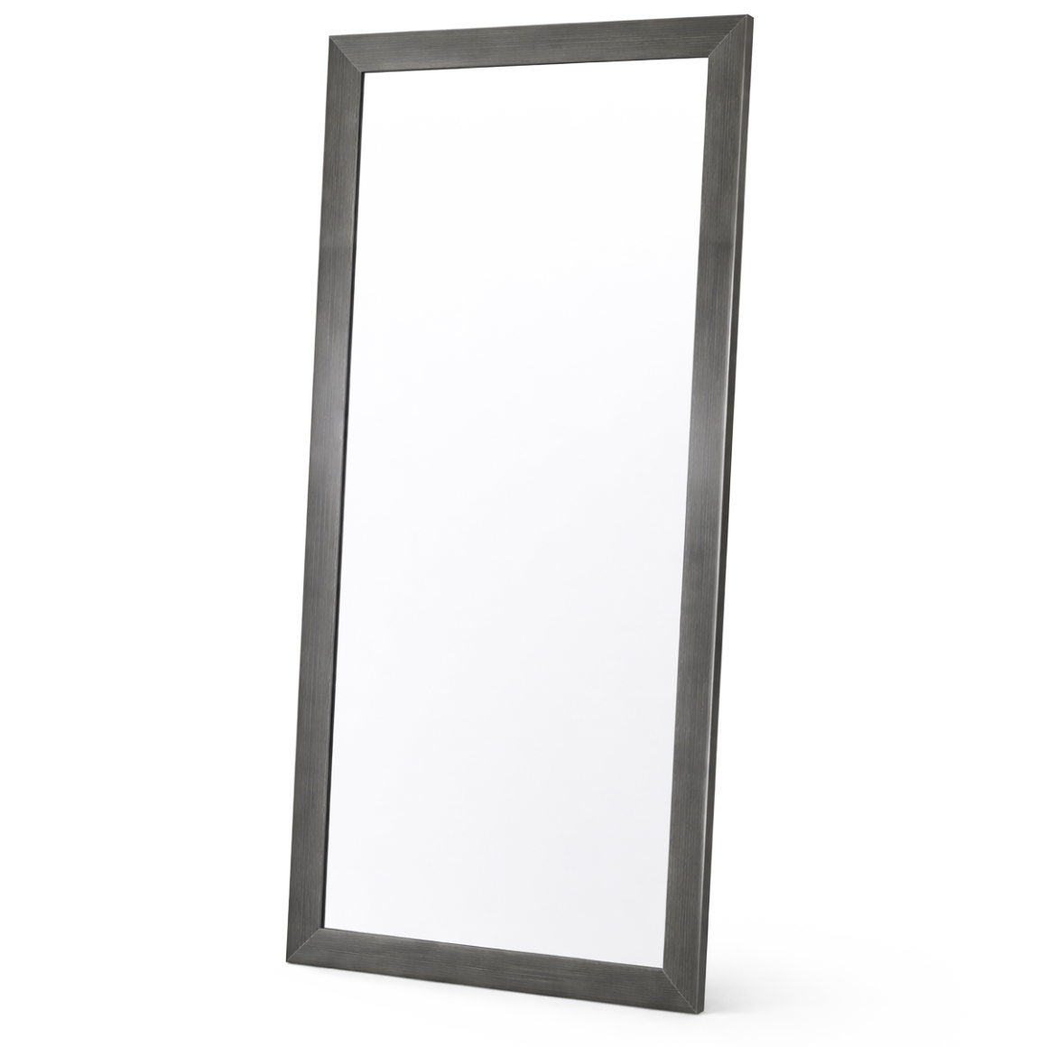 Modern wall mirror from the Carla series by Len-Fra featuring an anthracite coloured frame with a wood grain texture and subtle glossy finish. The sleek and contemporary look fits perfectly in a modern interior. Ideal as a full length mirror in a hallway or bedroom. Dimensions 55x125 cm. Includes mounting hardware.