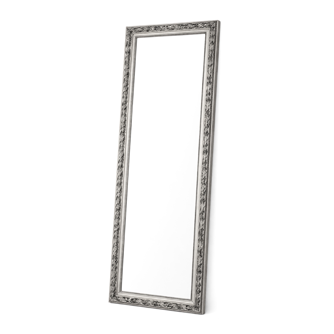 Elegant wall mirror from the Birte series by Len-Fra featuring a classic synthetic frame with a refined botanical pattern. The silver coloured finish creates a timeless and graceful look. Ideal as a full-length mirror in a bedroom, hallway or dressing area. Dimensions 50x3.2x150 cm. Includes mounting hardware.