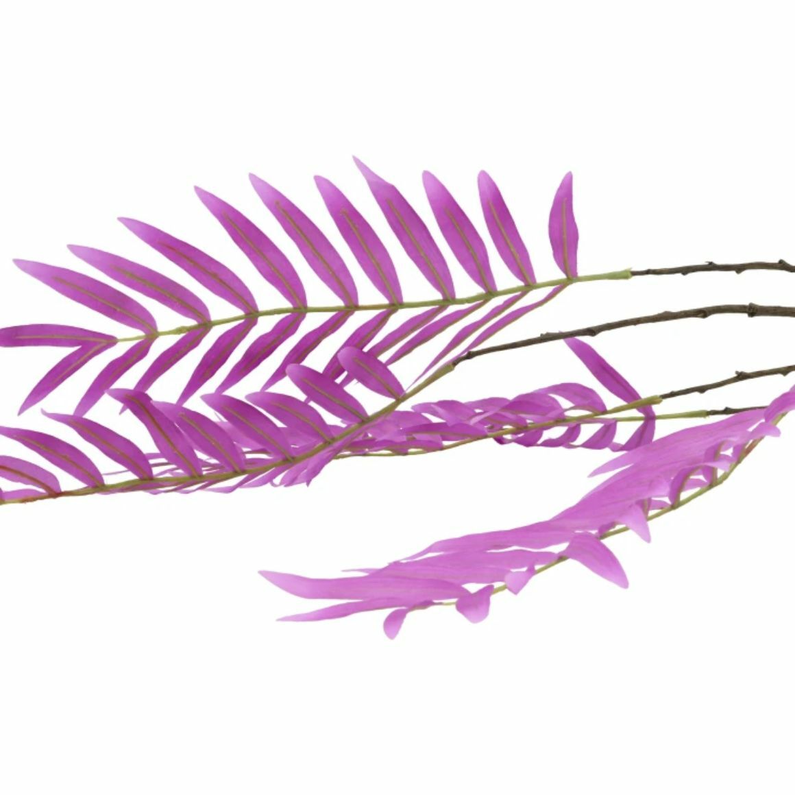 The artificial branch Palm Leaf by Daan Kromhout features fine palm leaves in a striking purple colour. The slender branches create an airy and decorative effect. The slightly flexible stem makes it easy to shape the branch for different arrangements. Suitable for tall vases, floral arrangements or decorative combinations with other artificial branches and silk flowers.