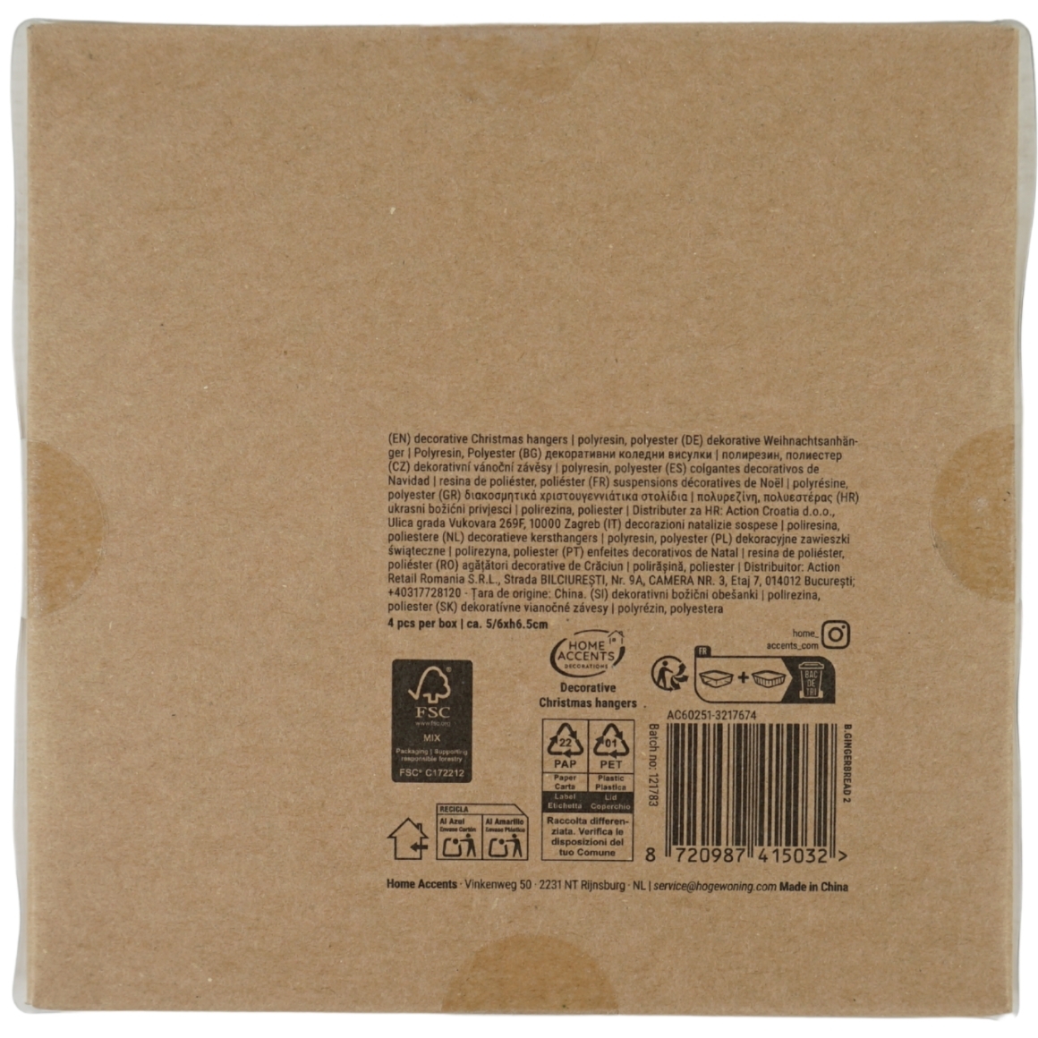Home Accents Christmas hanger 6 cm 4 assorted set of 4