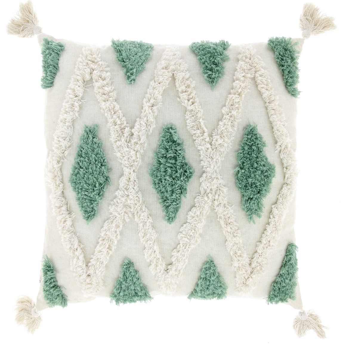 Decorative cushion Unique Living Alys in the colour surf blue with a size of 45 x 45 cm. The cushion has a cover made of 75% polyester, 19% cotton and 6% viscose and a filling of 100% polyester. Equipped with a hidden zipper on the side so the cover can easily be removed. The cover can be washed at 30 degrees.