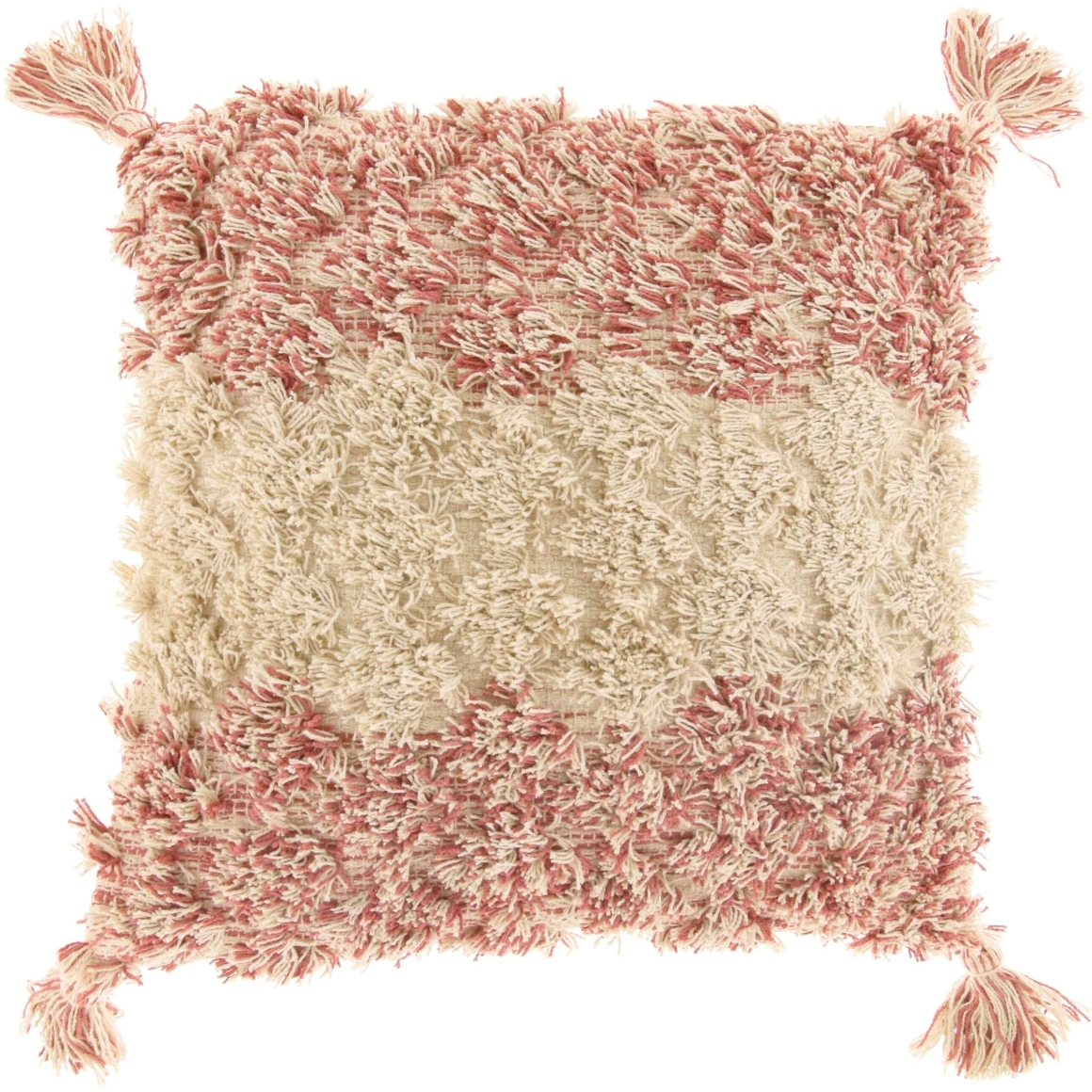 Decorative cushion Unique Living Beira in the colour redwood with a size of 45 x 45 cm. The cushion has a cover made of 100% cotton with a texture of soft tufted patterns and tassels on the corners. Equipped with a hidden zipper on the back so the cover can easily be removed. The cover can be washed by hand.