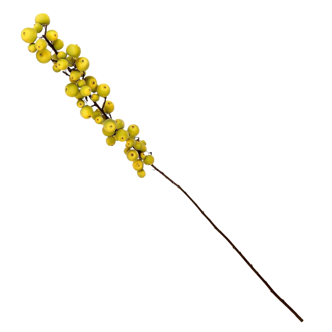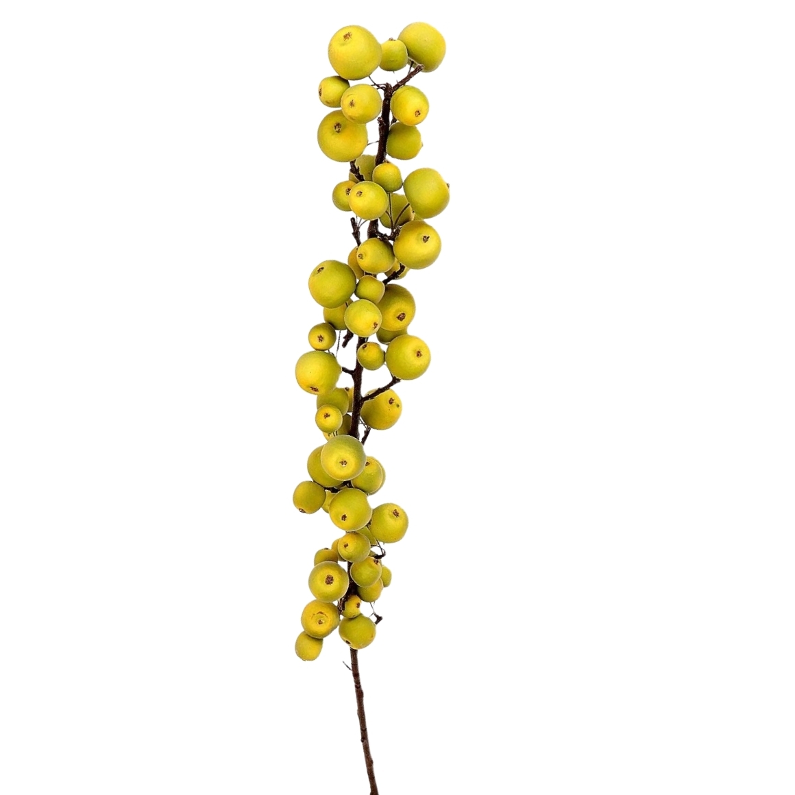 HBX artificial branch of an apple tree with small green apples. The branch has a full appearance with several fruits along the stem and a length of approx 135 cm. The slightly flexible stem makes it easy to shape as desired. Suitable for use in vases, floral arrangements or seasonal decoration.