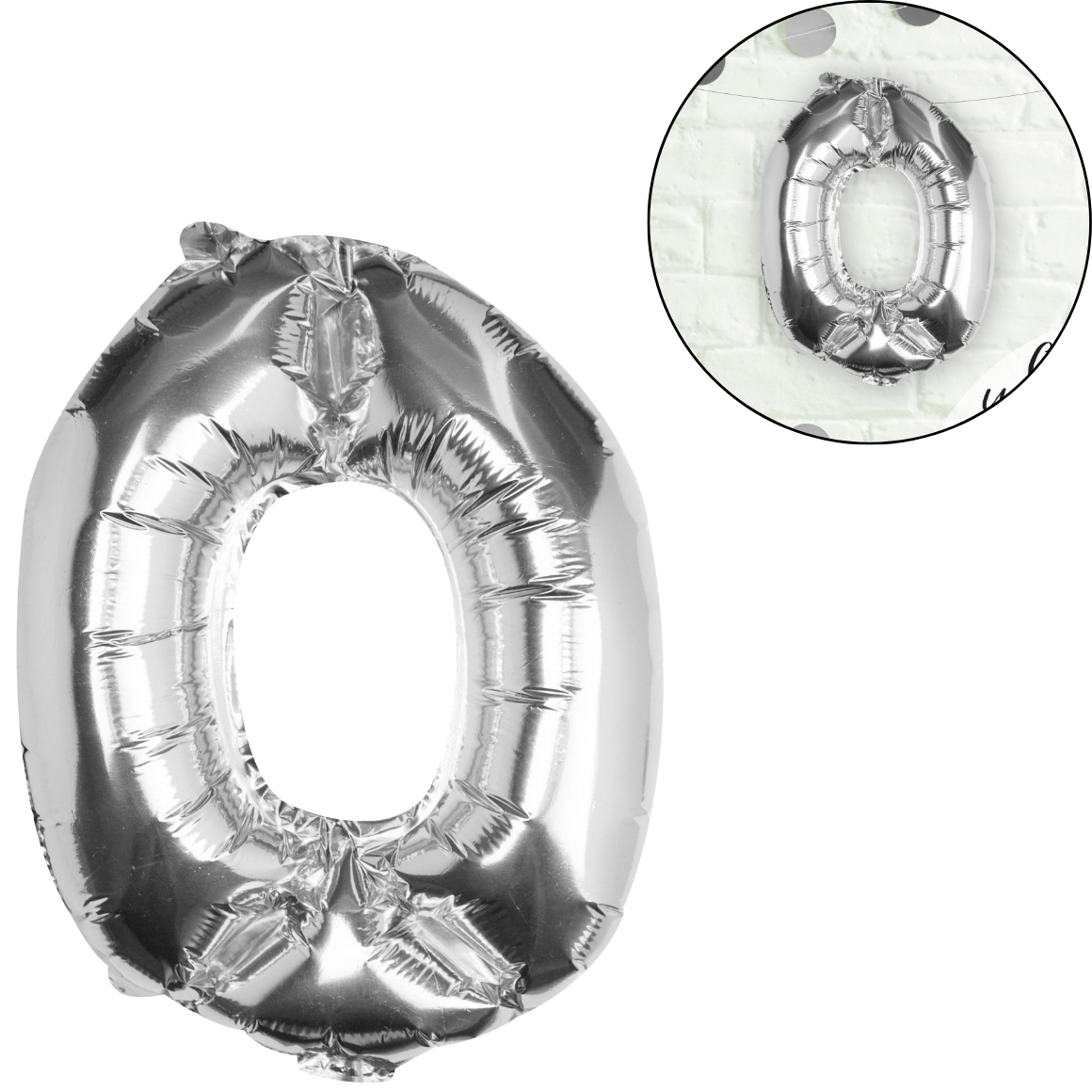Ballon en aluminium de couleur argent en forme du chiffre 0 de la marque Ginger Ray. Idéal comme décoration pour un anniversaire. Le ballon mesure 40 cm de haut et est livré avec une paille pour le gonfler.