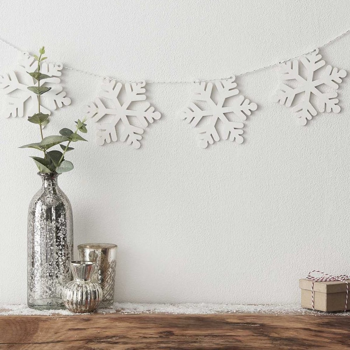 Apportez une touche élégante et festive à votre décoration de fête ou d’hiver avec cette guirlande flocon de neige Ginger Ray. Cet ensemble comprend 8 flocons de neige en bois blanc reliés par 2 mètres de ficelle blanche et argentée, parfaits pour décorer votre mur, votre manteau de cheminée ou votre table avec style. Idéal pour Noël, les fêtes d’hiver ou autres occasions spéciales, et ajoute un accent hivernal charmant à tout espace.