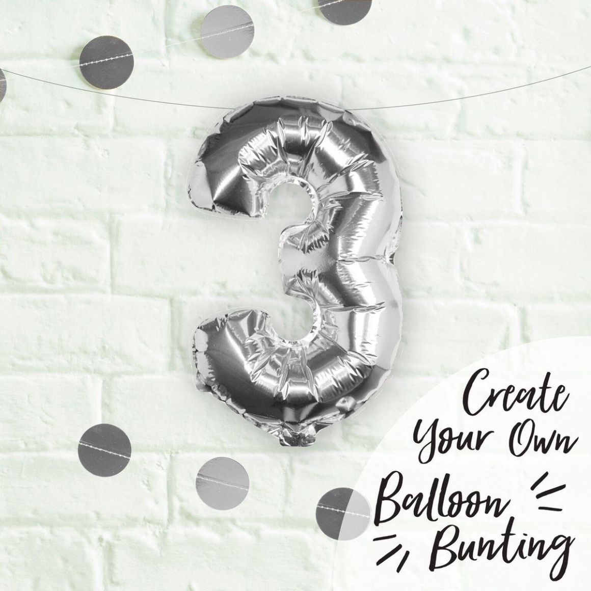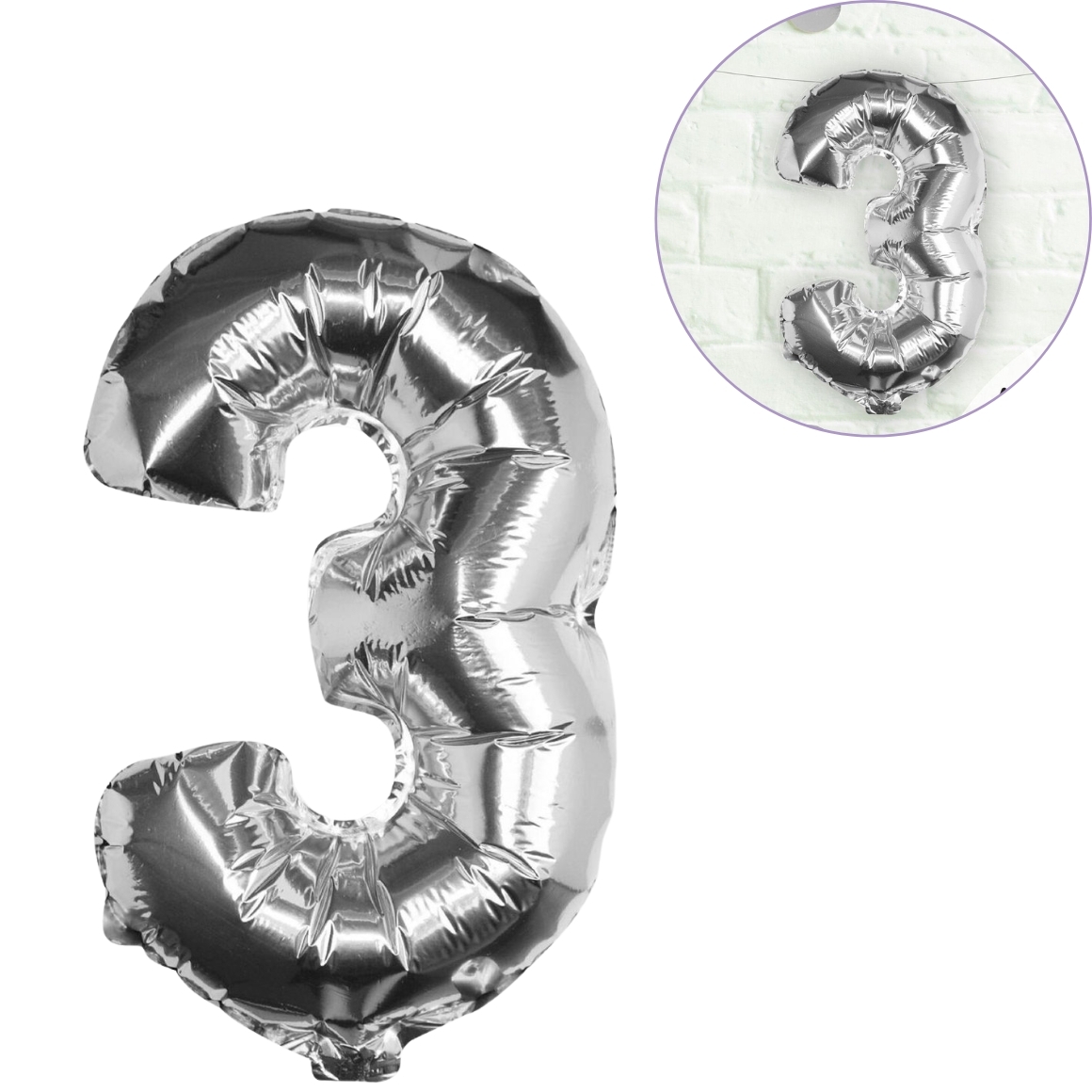 Ballon en aluminium de couleur argent en forme du chiffre 3 de la marque Ginger Ray. Idéal comme décoration pour un anniversaire. Le ballon mesure 40 cm de haut et est livré avec une paille pour le gonfler.