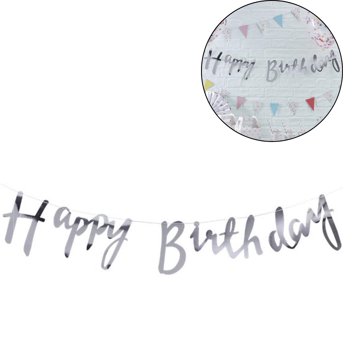 Guirlande de lettres Ginger Ray avec le texte Happy Birthday, 1,5 mètre de long. Idéale comme décoration pour les fêtes danniversaire et facile à accrocher aux murs ou au-dessus dune table. Légère, réutilisable et adaptée aux enfants comme aux adultes.