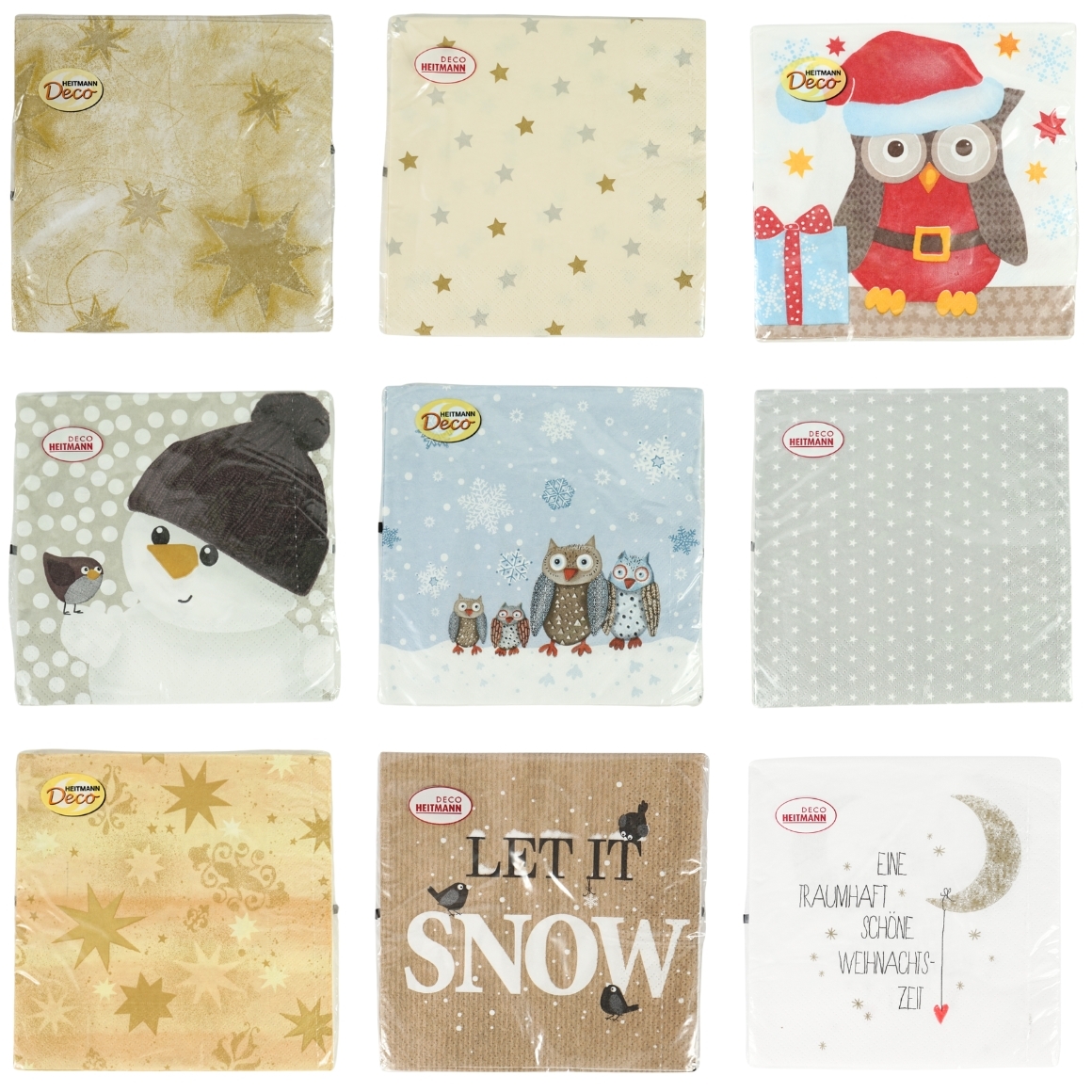 Article livré assorti, prix par paquet de 20 pièces. Serviettes festives 3 plis Deco Heitmann avec différents motifs de Noël. Format 33 x 33 cm, blanchies sans chlore. La composition et la répartition peuvent varier et être inégalement distribuées.